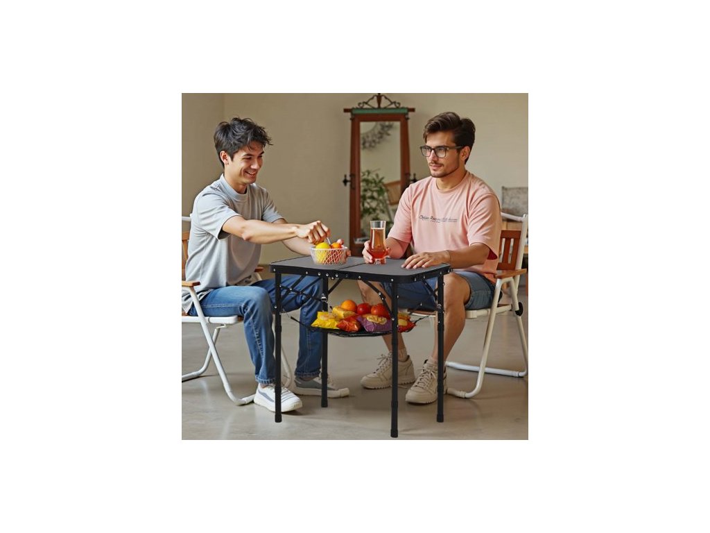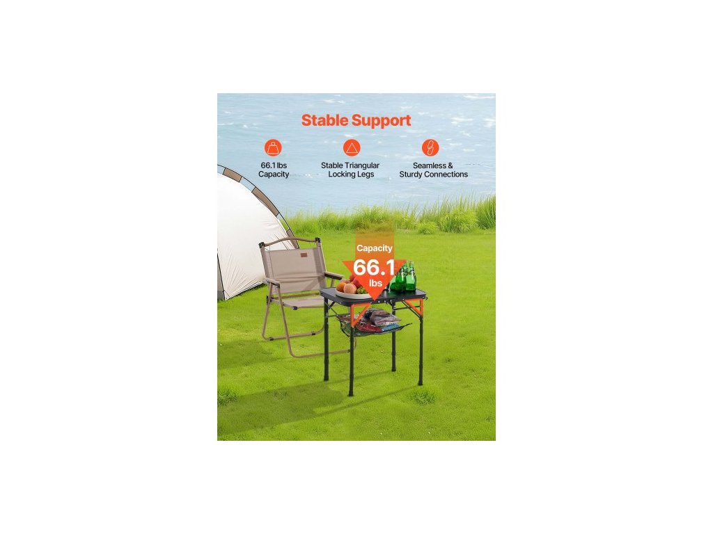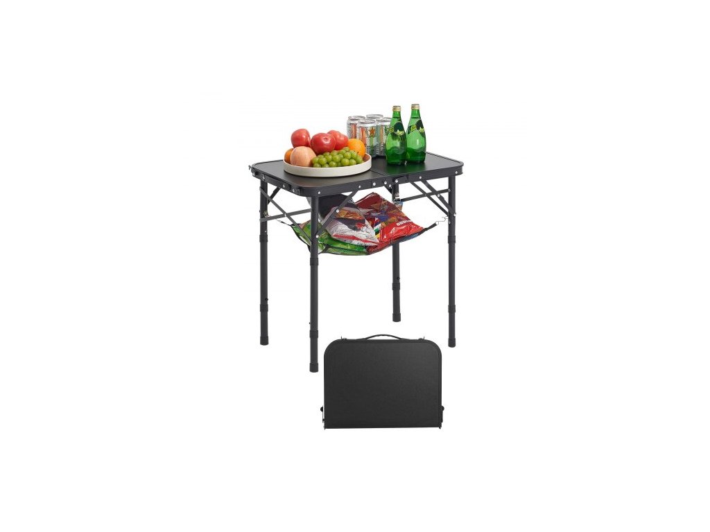 Skládací kempingový stůl , přenosné boční stolky s nastavitelnou výškou, plážový stůl z hliníku MDF se síťovanou vrstvou, rukojeť pro přenášení, lehký a kompaktní pro venkovní piknik a grilování, 24x16 palců, černý