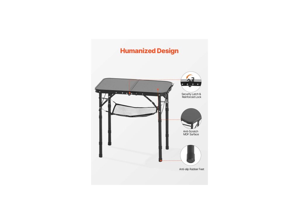 Skládací kempingový stůl , přenosné boční stolky s nastavitelnou výškou, plážový stůl z hliníku a MDF se síťovanou vrstvou, rukojeť pro přenášení, lehký a kompaktní pro venkovní piknik a grilování, 24x16 palců, černýBezpečnostní zámek