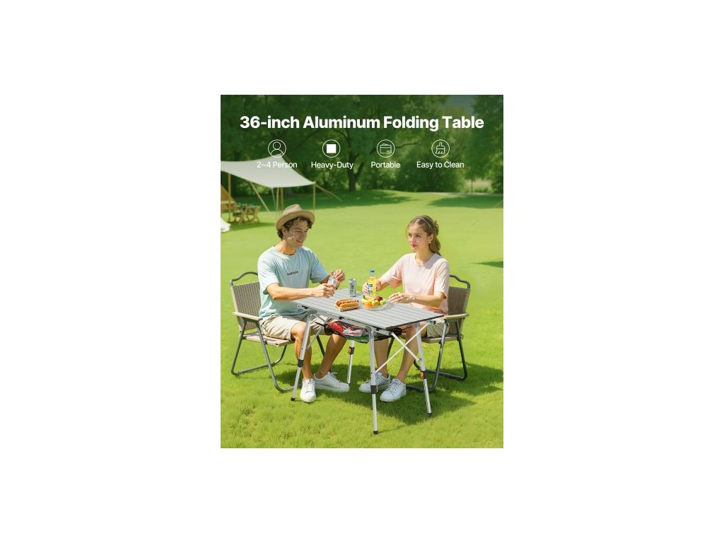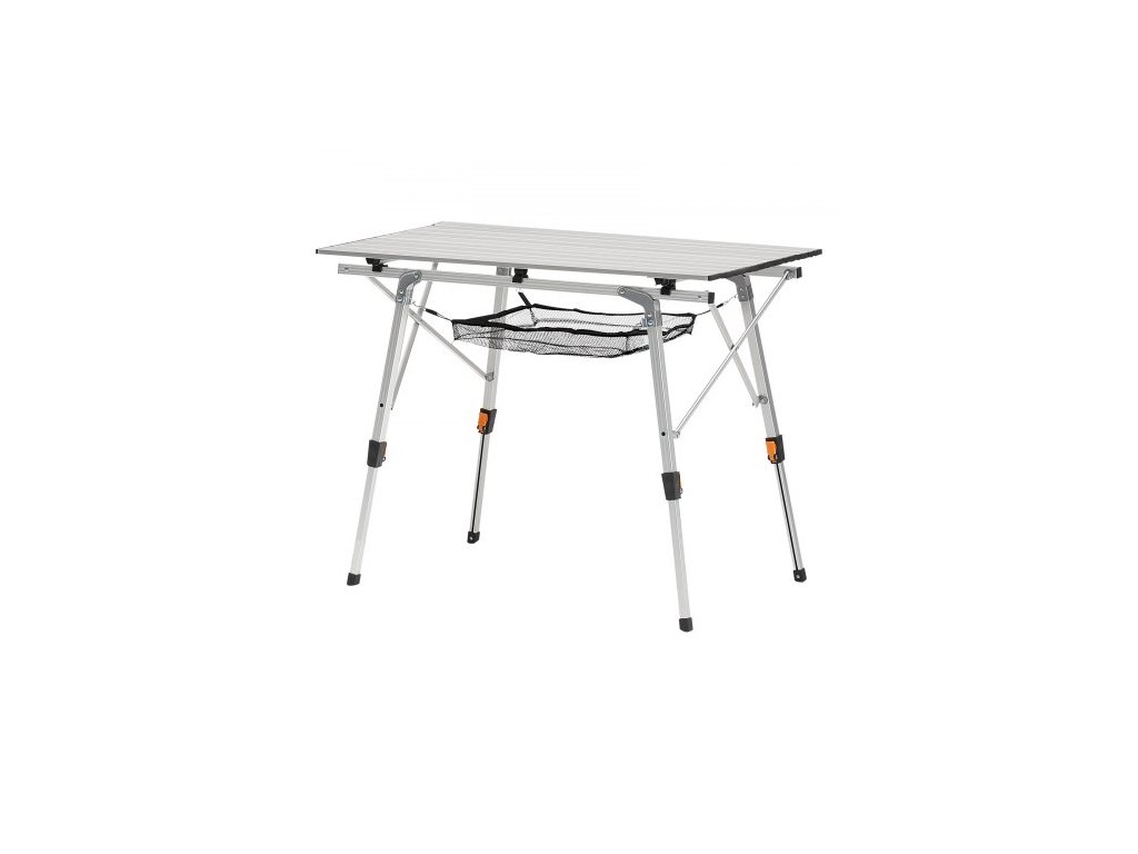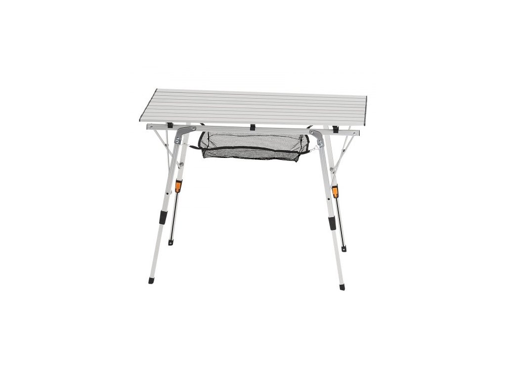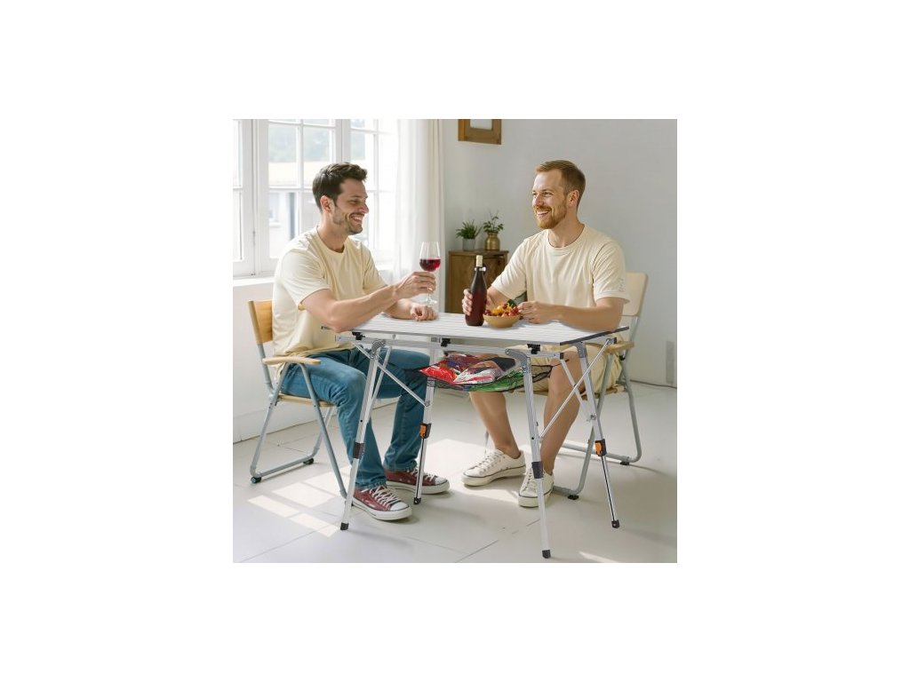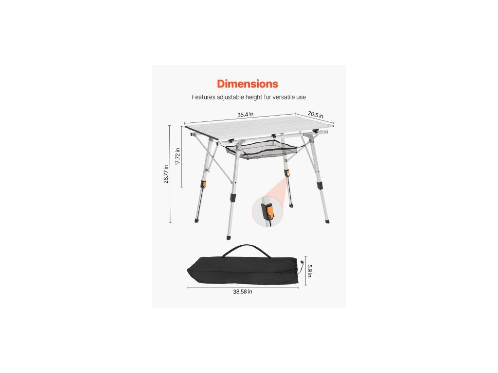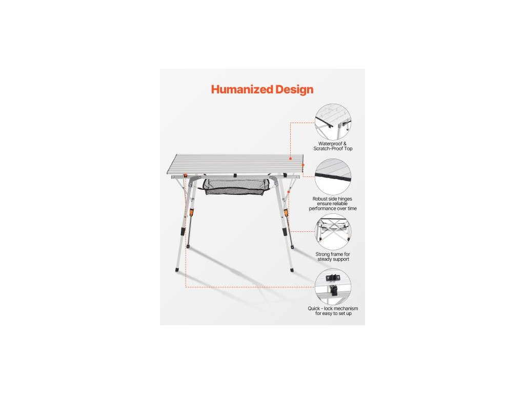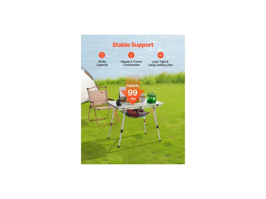 Skládací kempingový stůl , přenosné skládací boční stolky, lehký hliníkový plážový stůl s nastavitelnou výškou, horní síťovanou vrstvou a přepravní taškou, pro venkovní grilování, piknik, cestování, stříbrnýRobustní boční panty