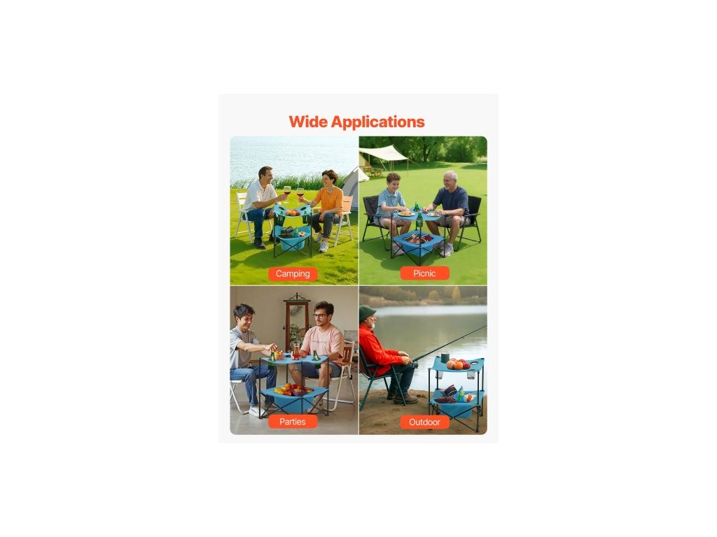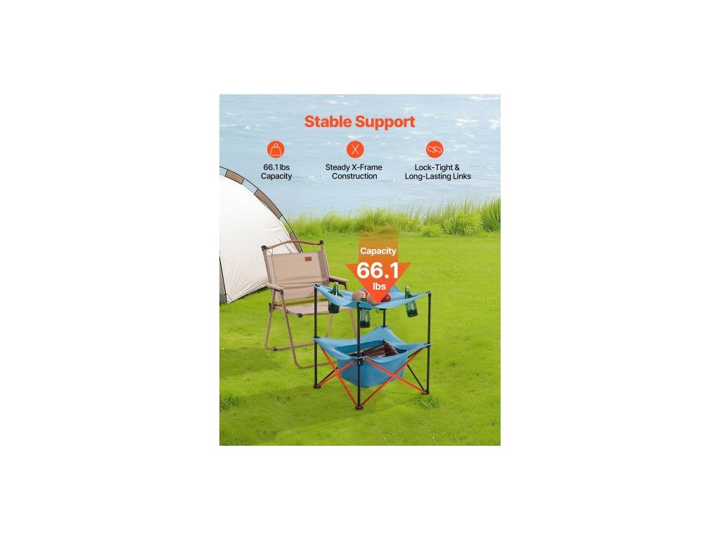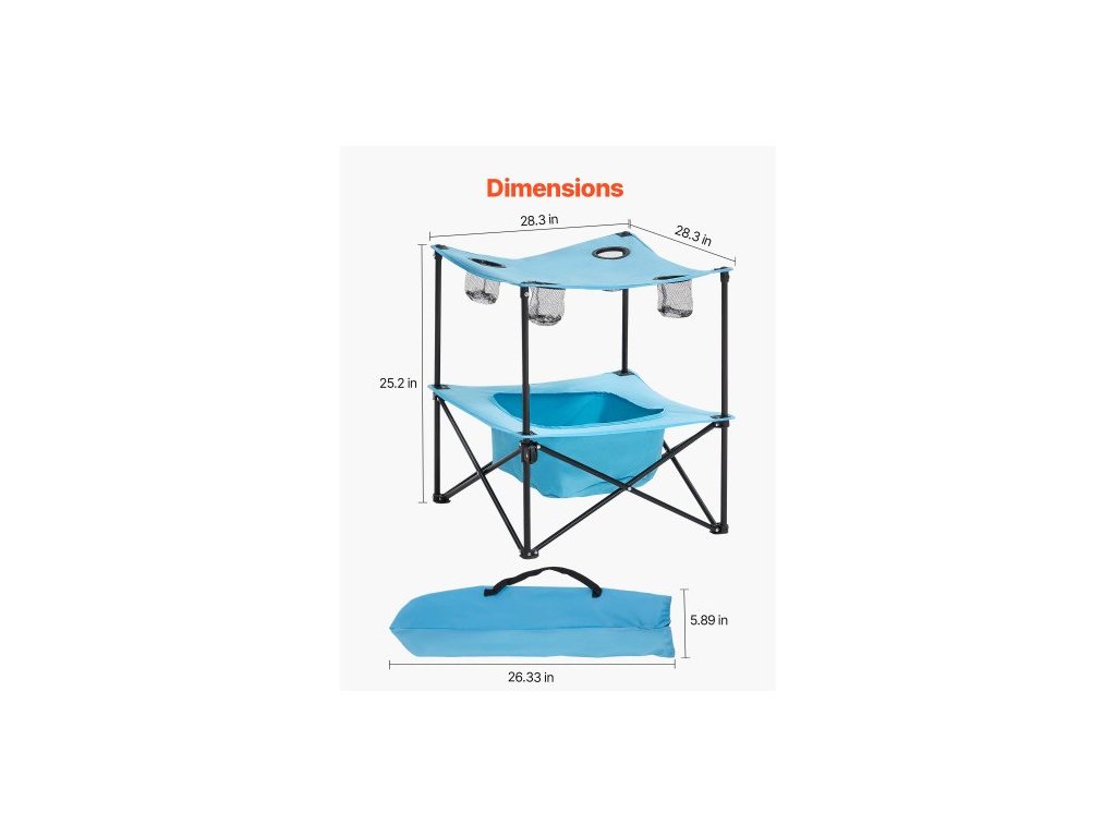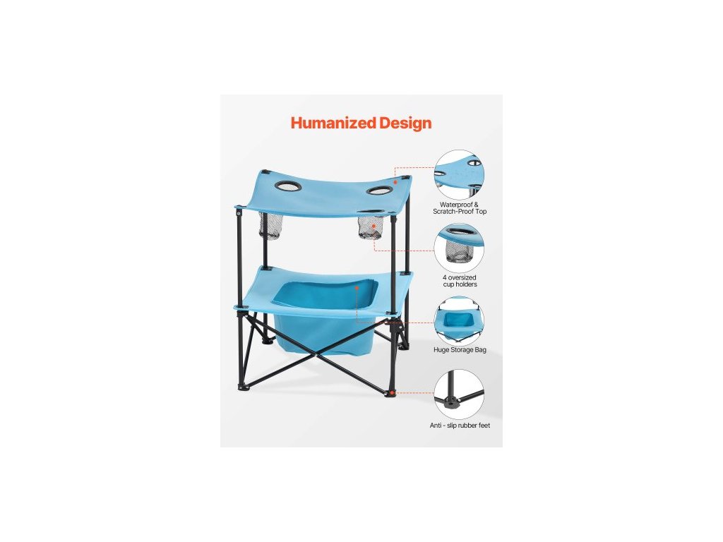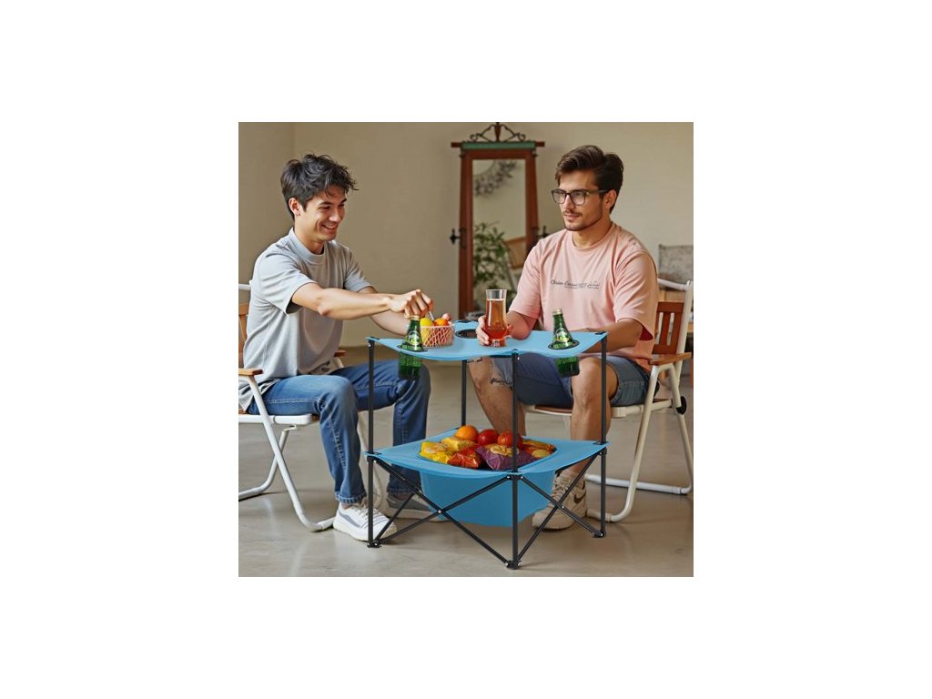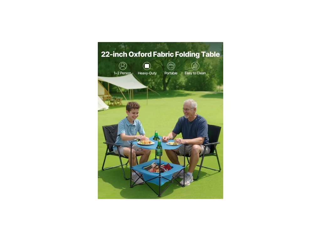 Skládací kempingový stůl , přenosný venkovní lehký piknikový stůl, vodotěsné plátěné cestovní plážové stolky z oxfordské tkaniny 600D, se 4 držáky na nápoje, přepravní taška, pro kempování a piknik na zádech, modrýVodotěsná a odolná vrchní deska