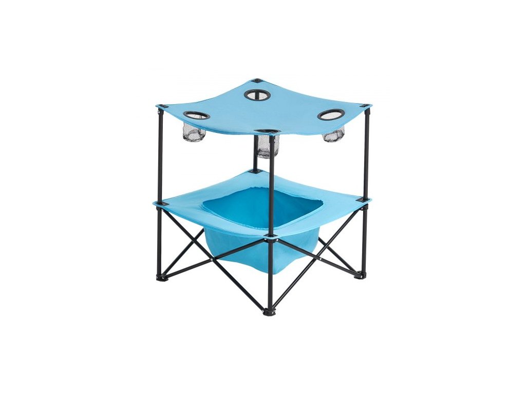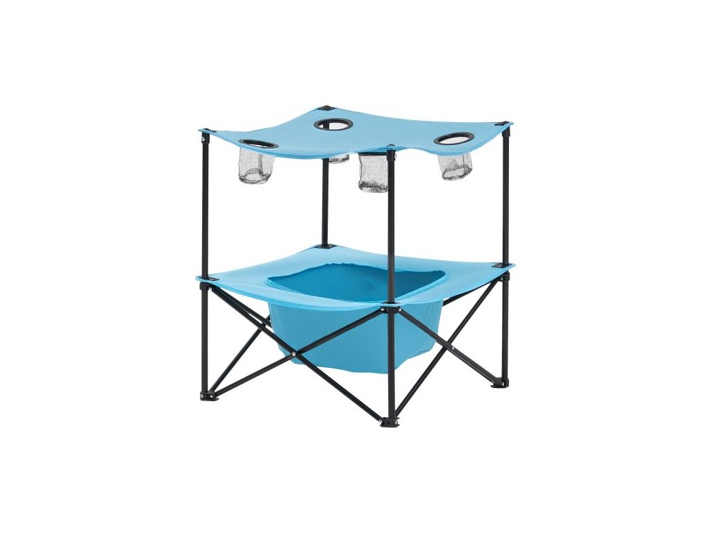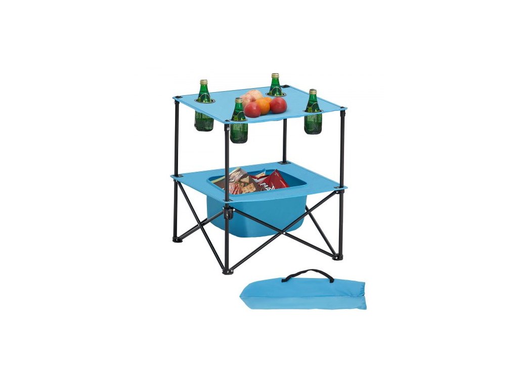 Skládací kempingový stůl , přenosný venkovní lehký piknikový stůl, vodotěsné plátno z oxfordské tkaniny 600D, cestovní plážové stoly, se 4 držáky na nápoje, přepravní taška, pro piknik na zádech, modrý