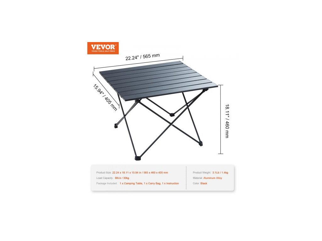 Materiál pracovní desky: hliníková slitina, tloušťka stěny trubky: 1,0 mm / 0,4", rozměry výrobku (DxŠxV): 565x460x405 mm / 22,24"x18,11"x15,94", tloušťka pracovní desky: 0,7 mm / 0,03", barva: černá, číslo modelu položky: AP-SS-004, nosnost: 66 lb / 30 kg ± 3%, materiál rámu: hliníková slitina, průměr rámu: φ11x9 mm / 0,4"x0,35", Čistá hmotnost: 3,1 lb / 1,4 kg (včetně veškerého příslušenství)