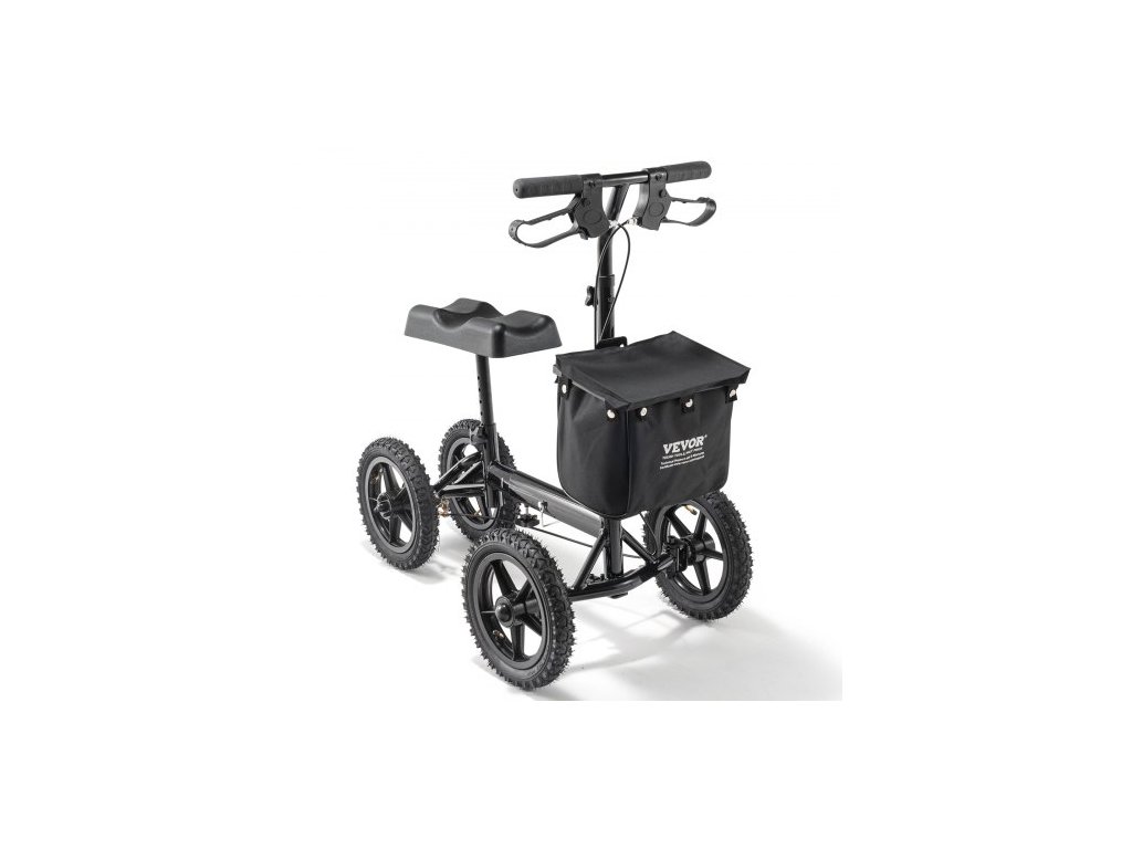 Skládací kolenní koloběžka , hliníkové řiditelné chodítko s výškově nastavitelnou rukojetí a chráničem kolen, terénní kola 12" (30,5 cm), dvojité brzdy, koloběžka pro zotavení nohou při zlomených kotnících a poraněních chodidel, 350 liber/158,8 kgTexturované terénní pneumatiky plněné vzduchem