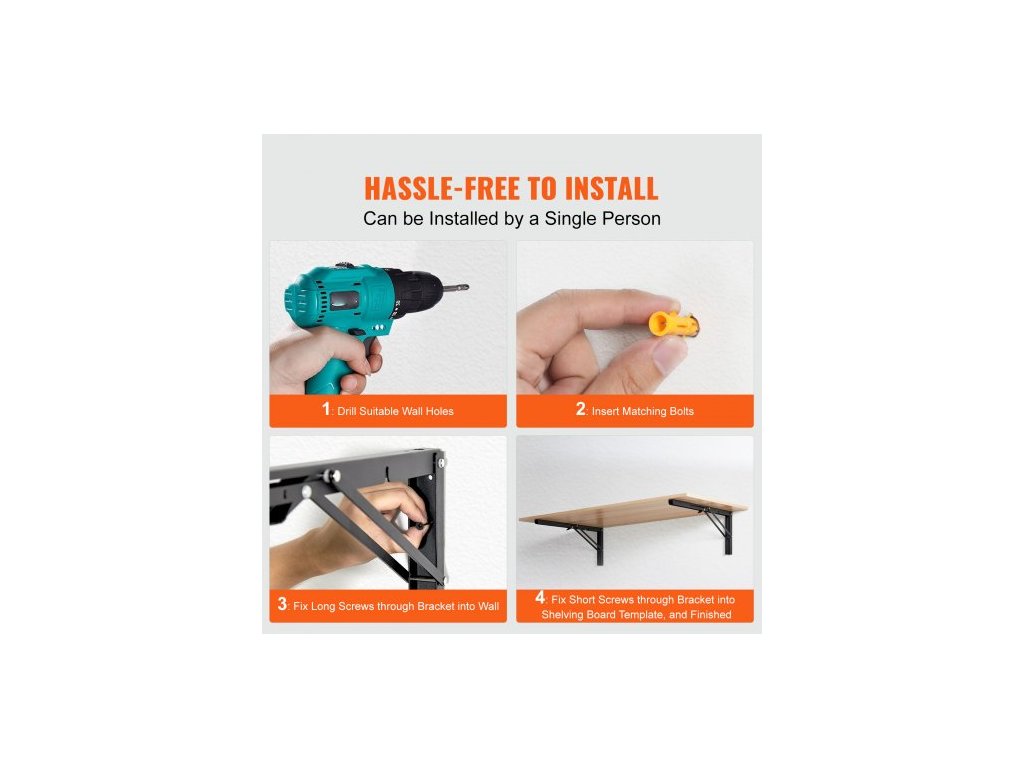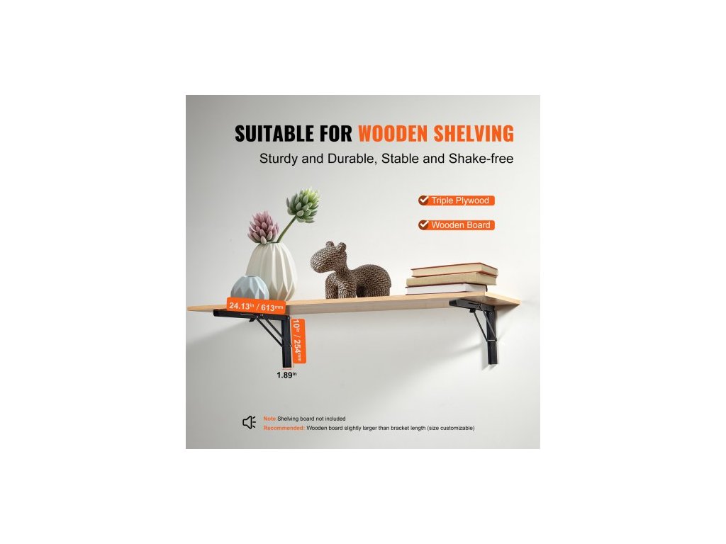 Skládací držák police , délka 24”, 2 ks, Vysoce odolné plovoucí držáky polic, Držáky pro police, 5mm silný matně černý držák police ve tvaru L, Ocelové držáky polic s nosností 300 liberInstalační držák