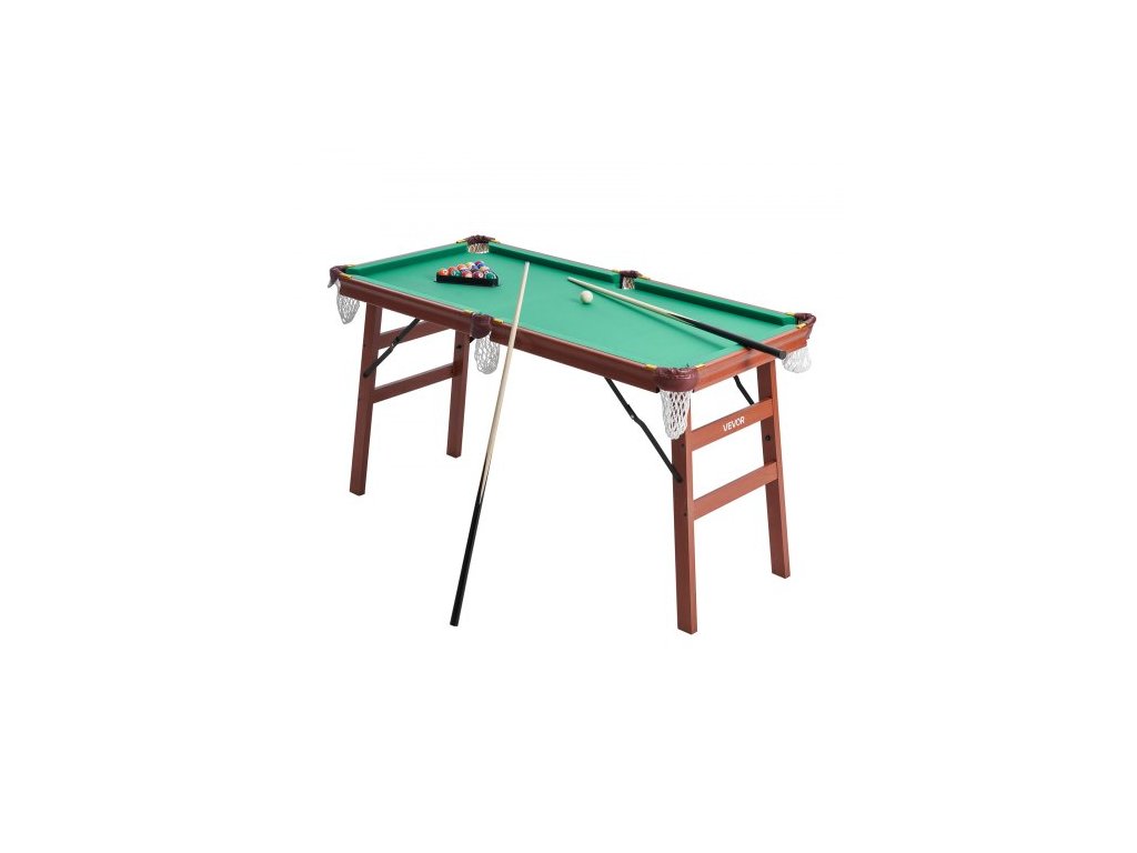 Skládací kulečníkový stůl , přenosné kulečníkové stoly 140 cm, skládací herní sada pro úsporu místa, obsahuje míček, tágo, stojan, křídu a štětec, hnědá s látkou Bule, pro rodinné použití, rekreační místnostKompletní startovací sada