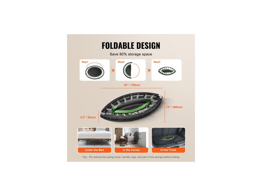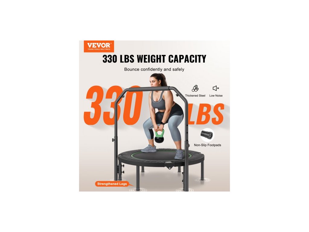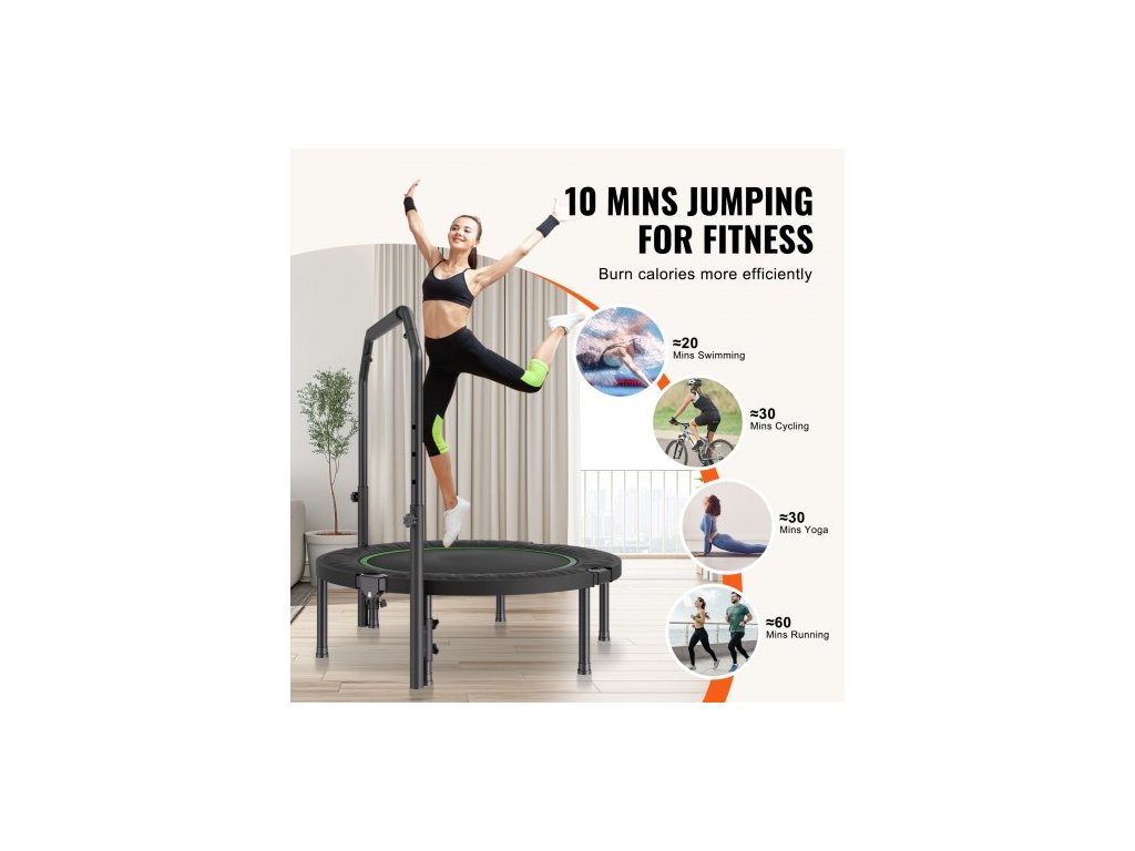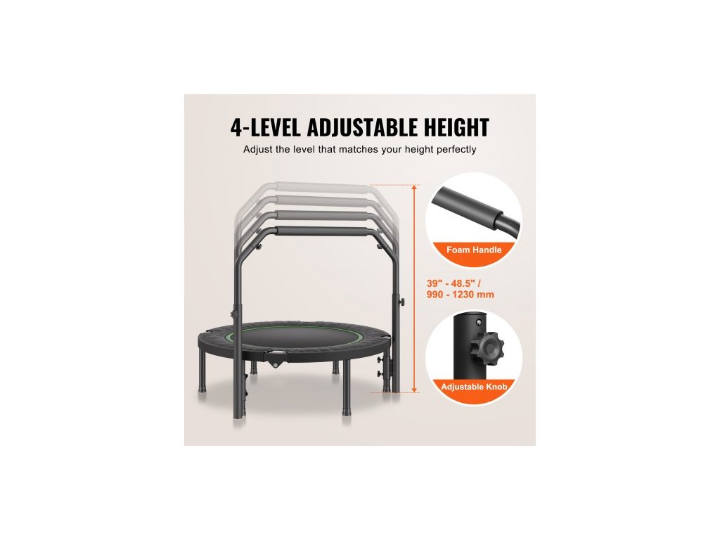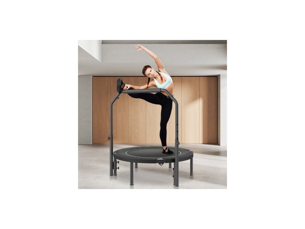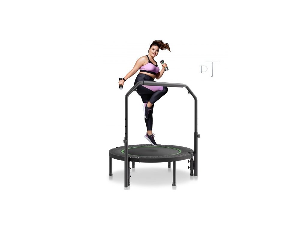Skládací mini trampolína , fitness trampolína o průměru 40 palců, maximální nosnost 150 kg, stabilní a tichá trampolína s výškově nastavitelnou pěnovou rukojetí ve 4 úrovních, pro dospělé, cvičení v interiéru/na zahraděUnese až 150 kg