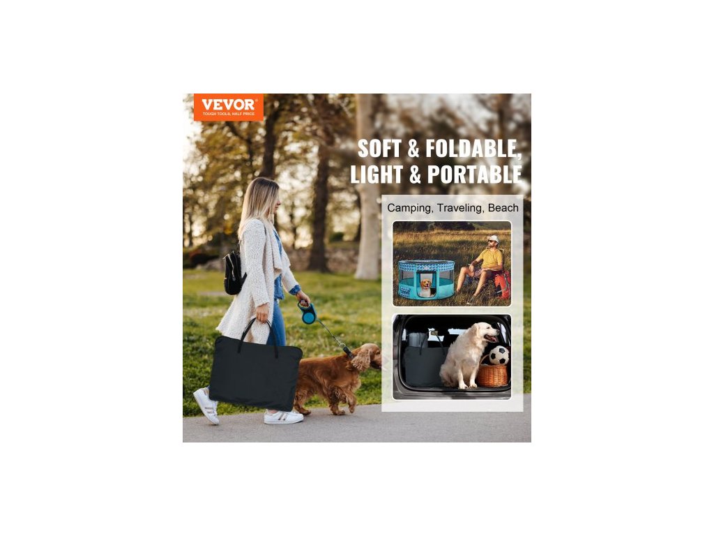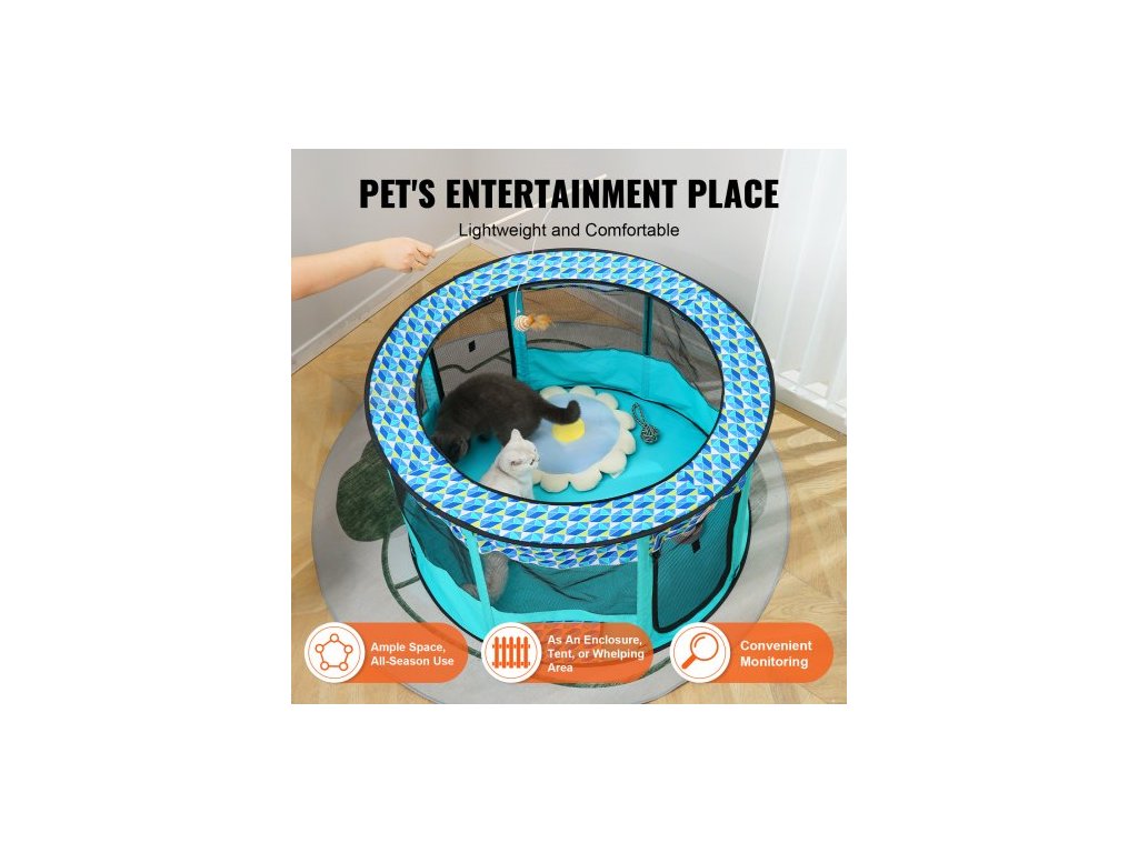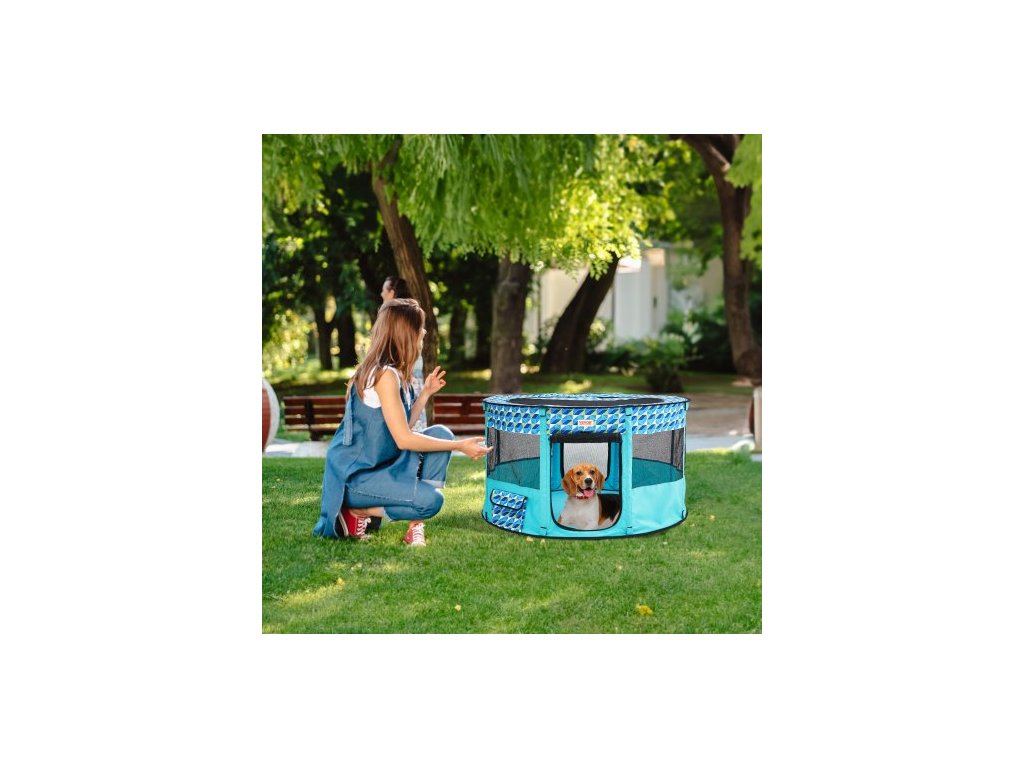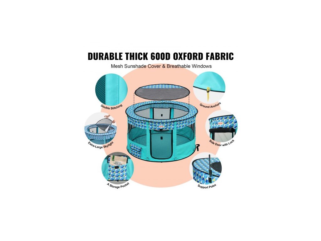 Skládací ohrádka pro domácí mazlíčky , přenosná ohrádka pro psy 44'' x 44'' x 24'', klece pro štěňata, psa, kočku, vodotěsná oxfordská látka 600D, odnímatelný zip, pro vnitřní, venkovní, cestovní, kempovací (kulatá, L)Osmistranné odvětrávání