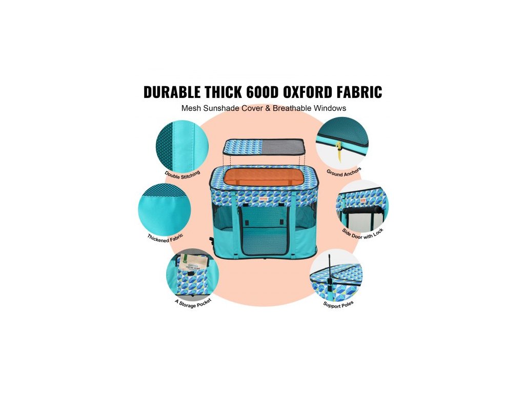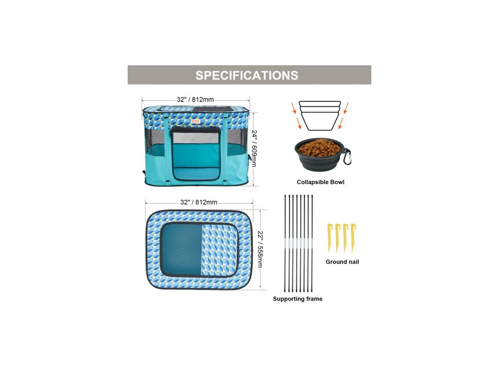 Skládací ohrádka pro domácí mazlíčky , přenosná ohrádka pro psy 812 x 609 x 558 cm, přepravka pro štěňata, psa a kočku, vodotěsná oxfordská tkanina 600D, odnímatelný zip, pro vnitřní, venkovní, cestovní, kempovací použití (obdélník, osmistranné větrání, různé velikosti k dispozici, prémiový materiál, jednoduchá instalace, snadné čištění, přenosná přepravka pro domácí mazlíčky, tvar: obdélník, číslo modelu: SX5012, skládací miska (průměr x výška): 13 x 5 cm / 5,12 x 1,97 palce, čistá hmotnost: 1,7 kg / 3,75 lbs, hlavní materiál: oxfordská tkanina 600D, rozměry výrobku: 812 x 609 x 558 mmDoplňkové parametry