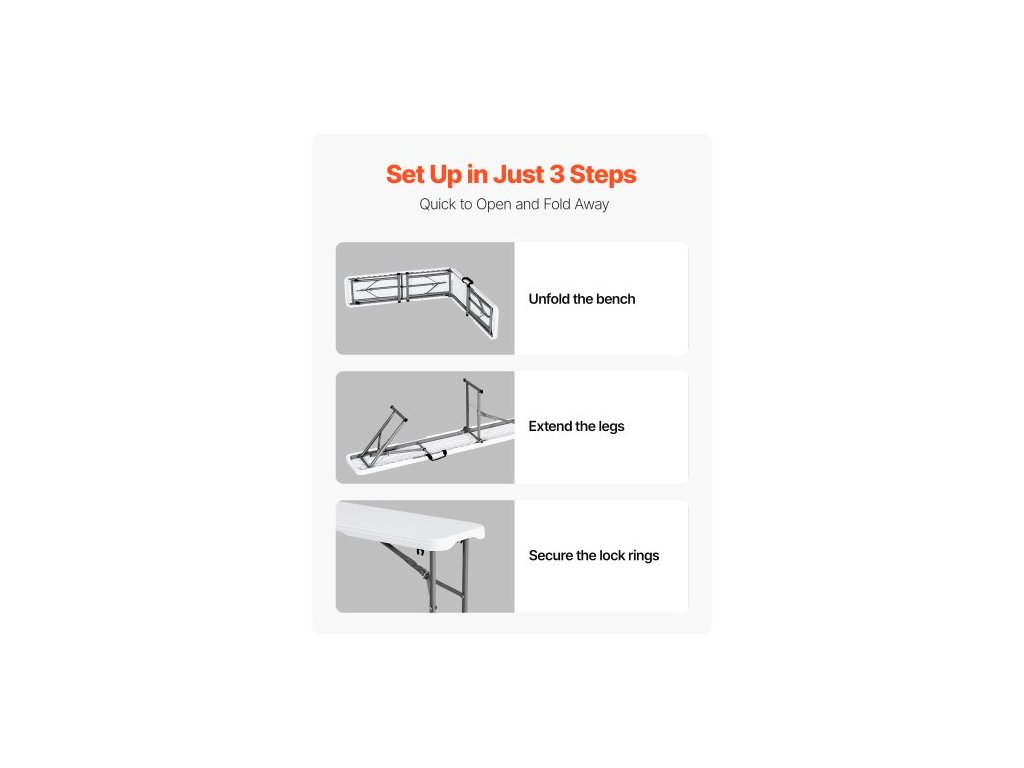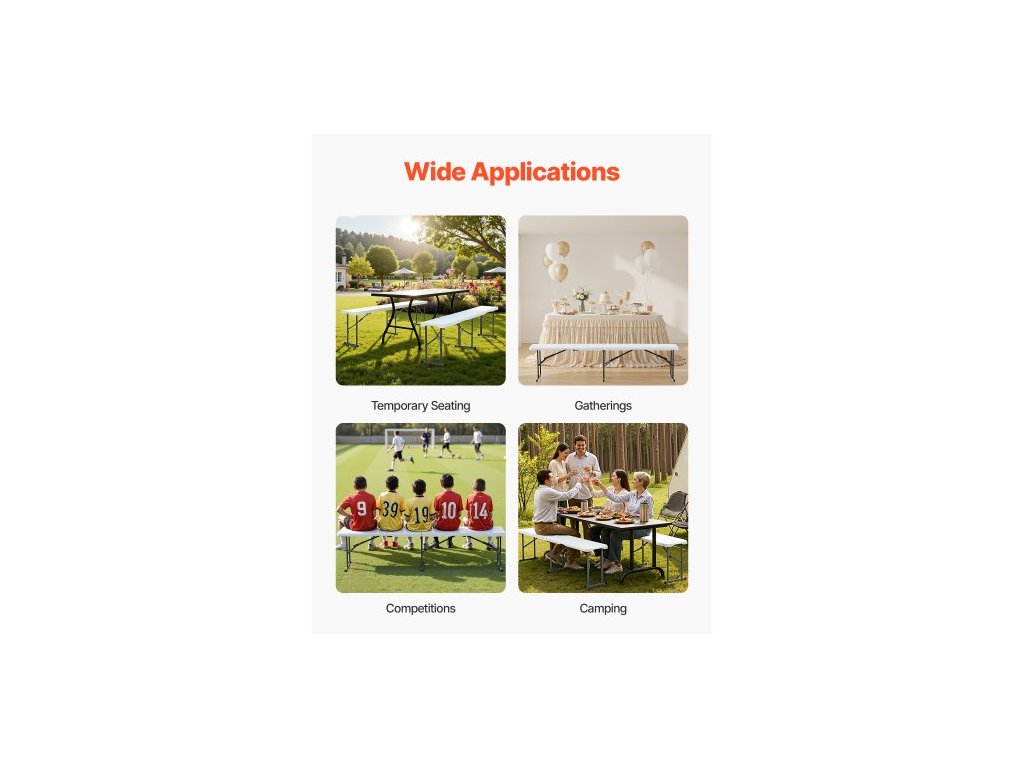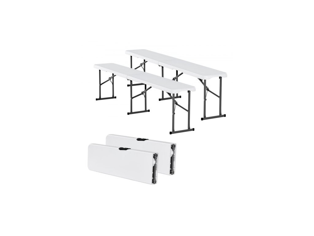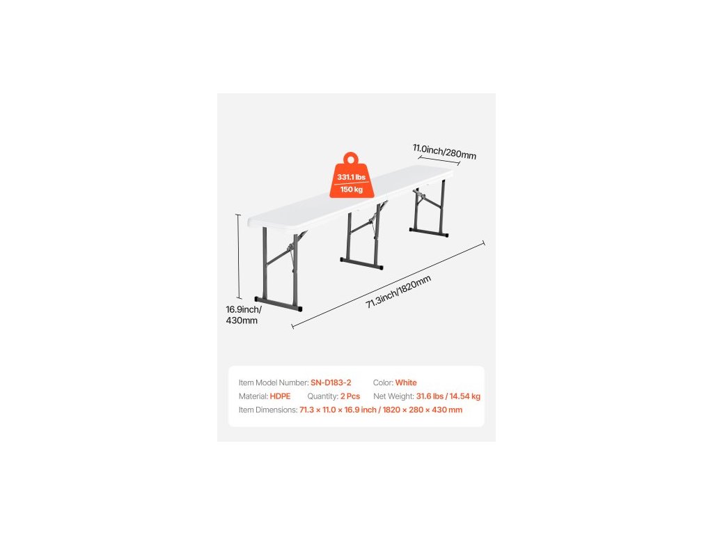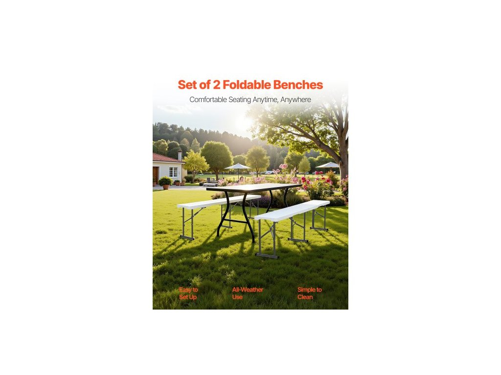 Skládací plastová lavice , přenosná lavice o délce 1,8 m pro vnitřní/venkovní piknik, párty, terasu, kempování, stolování, skládací hladké sedadlo z HDPE pro zahradní fotbal, víceúčelové zábavní aktivity, balení po 2 ks, bílá