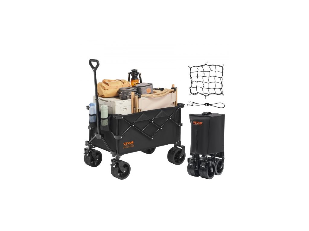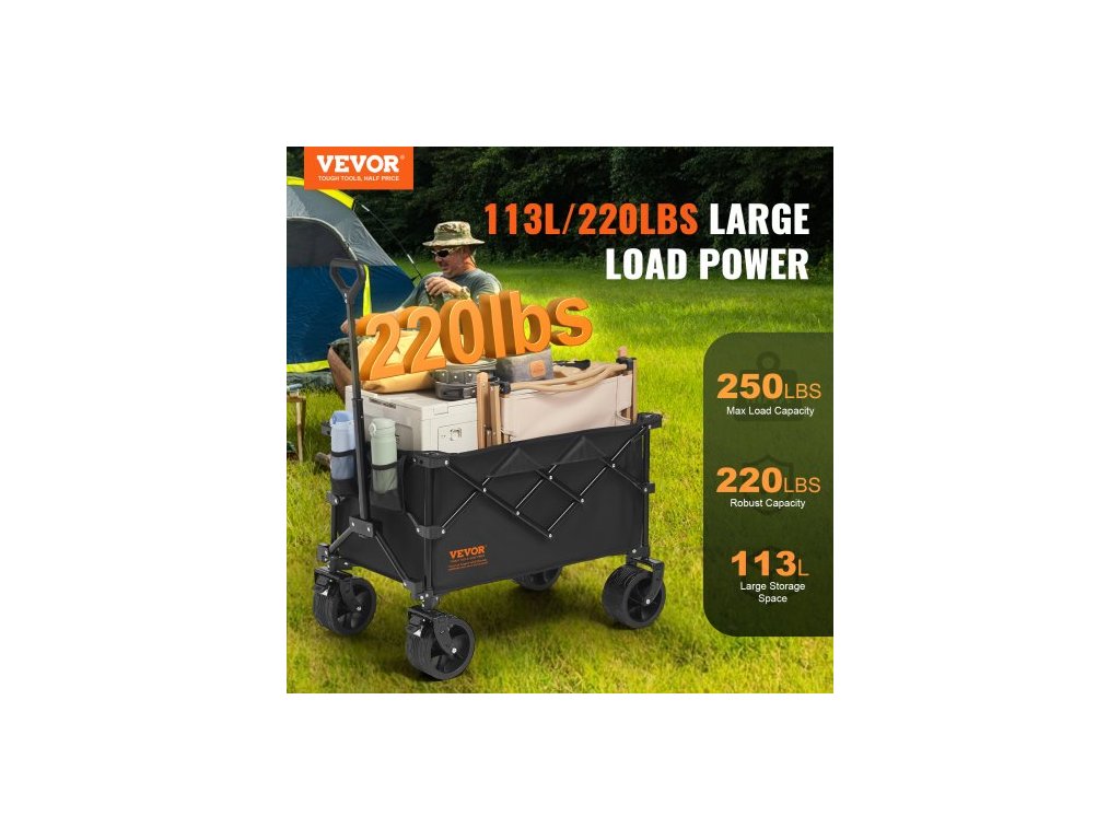 Skládací vozík , plážový vozík o objemu 113 l s terénními koly, odolný skládací vozík s maximální nosností 123 kg s držáky na nápoje, sportovní vozík na kempování, nakupování, zahraduVelká úložná kapacita