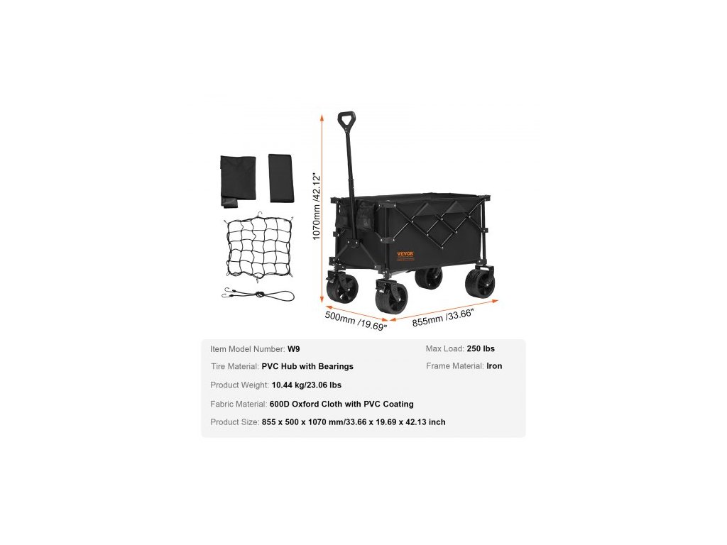 Číslo modelu položky: W9,Materiál pneumatik: PVC náboj s ložisky,Hmotnost výrobku: 10,44 kg/23,06 lbs,Maximální nosnost: 123 kg,Materiál rámu: Železo,Robustní nosnost: 100 kg,Úložná kapacita: 113 l,Materiál látky: Oxfordská tkanina 600D s PVC povlakem,Rozměry výrobku: 855x500x1070 mm/33,66 x 19,69 x 42,13 palce