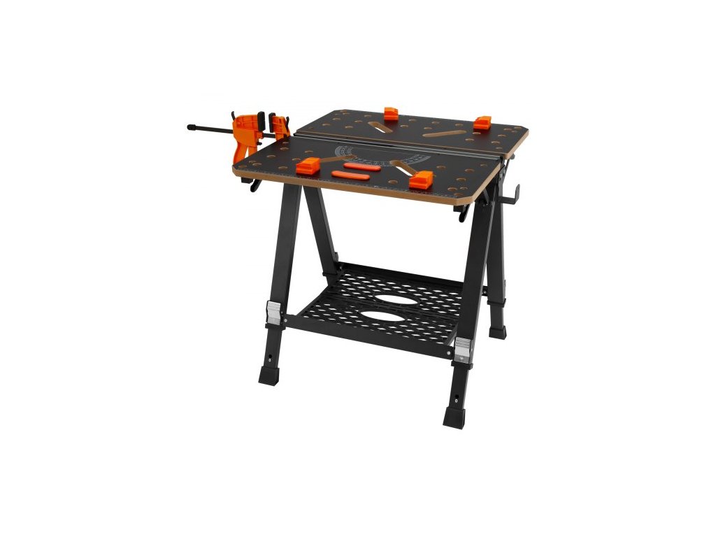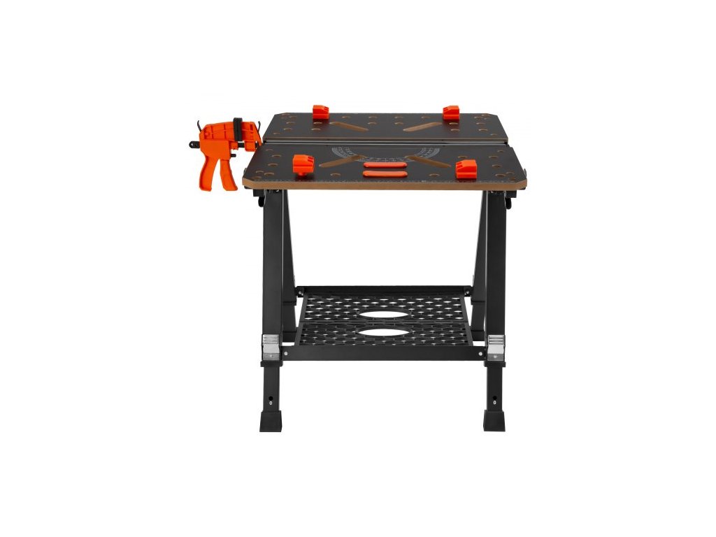 Náš přenosný stůl na nářadí je vybaven jednou rychloupínací svorkou a čtyřmi upínacími výstupky pro bezpečné uchycení jakéhokoli materiálu na místě. K dispozici jsou možnosti horizontálního i vertikálního upínání.