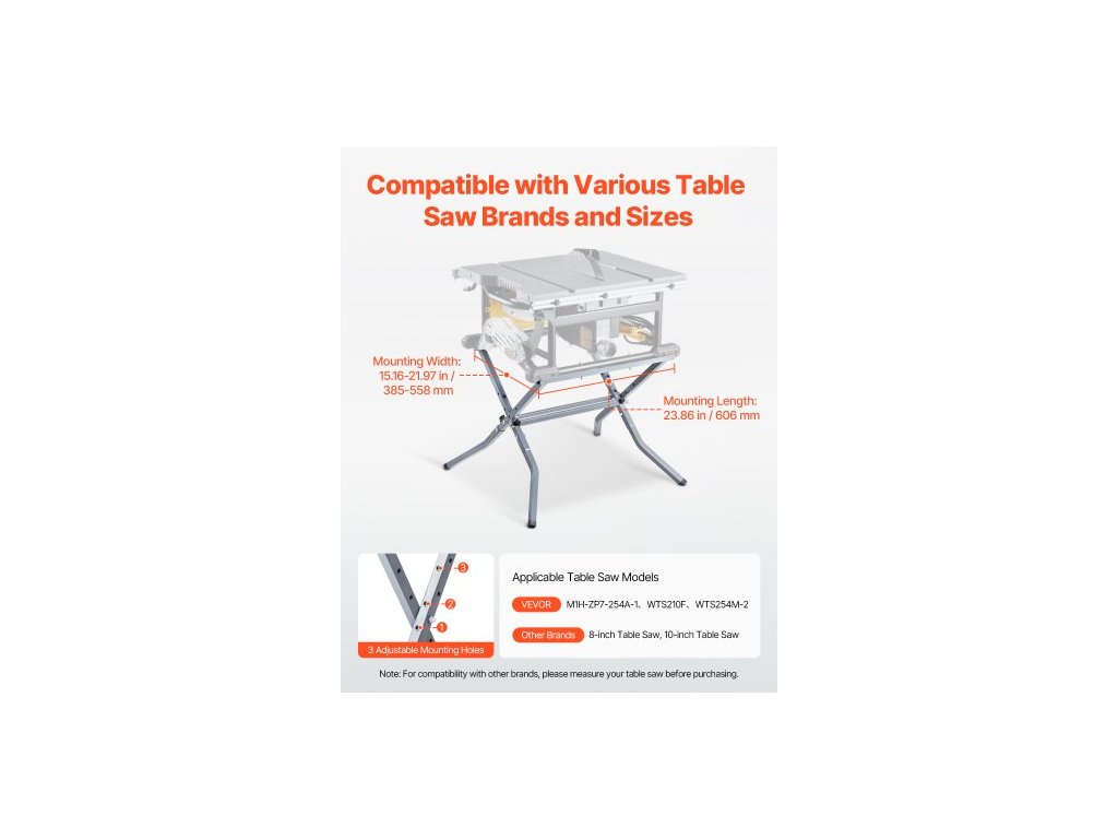 Skládací stojan na stolní pilu , nosnost 158,76 kg, přenosný kompaktní stojan na stolní pilu, robustní konstrukce, snadné skladování, skládací design, univerzální pro většinu značek stolních pilZákladní příslušenství k nářadí