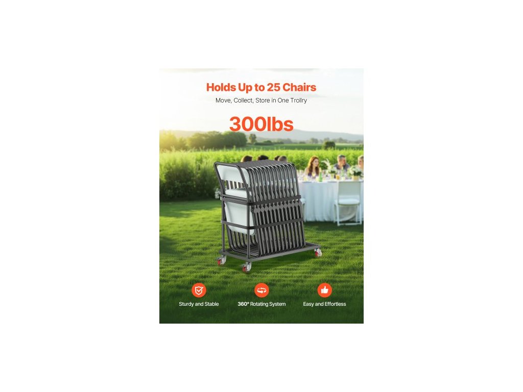 Skládací stojan na židle , nosnost 136 kg, vertikální vozík na židle ve tvaru L pro 25 židlí, odolný kovový úložný vozík na židle s gumovými kolečky, multifunkční držák na židle, matně černá