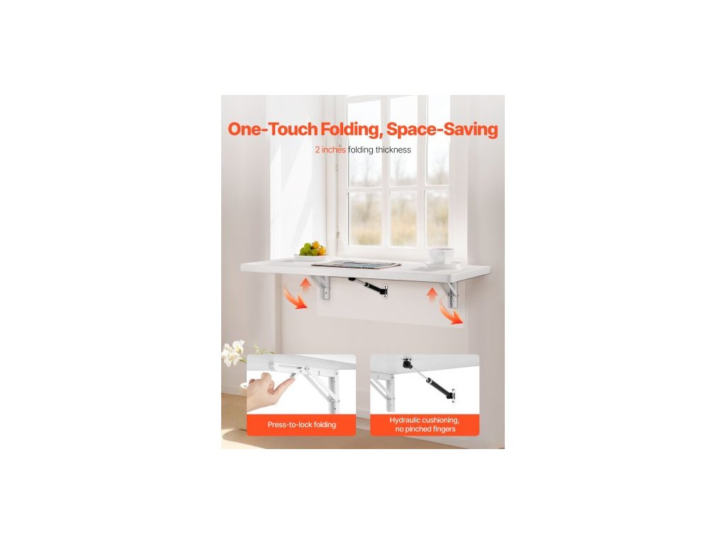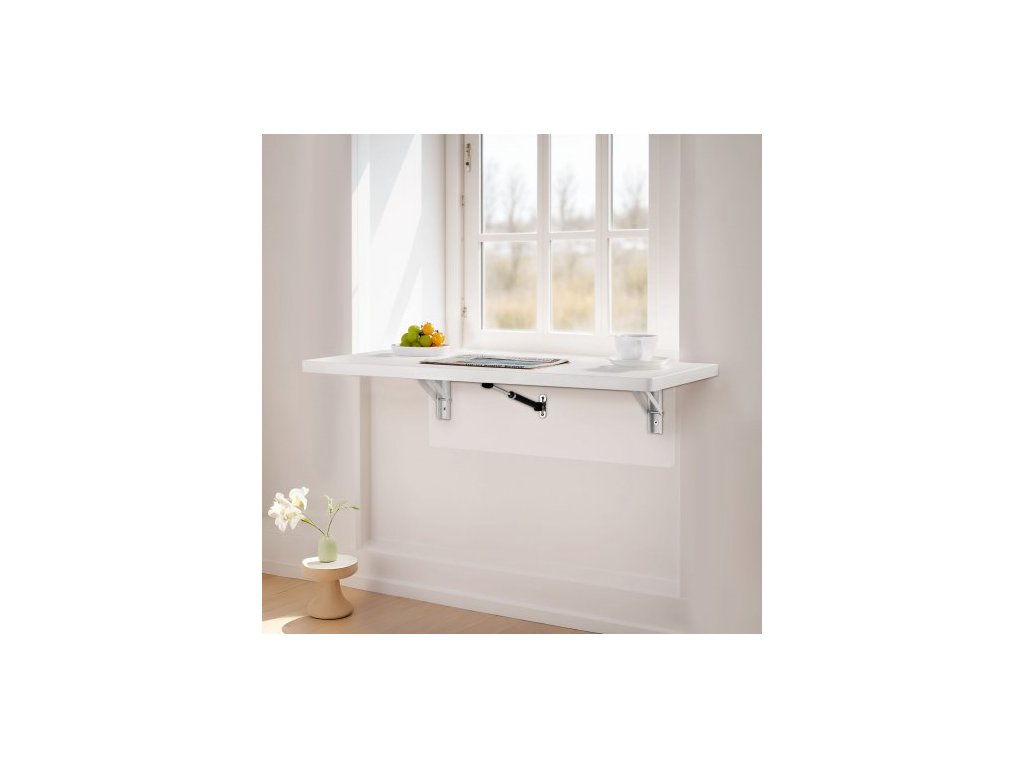 Skládací stůl k připevnění na zeď, 84 x 41 cm, plovoucí stůl s železným držákem, skládací stůl pro malé prostory, domácí kancelář, jídelnu, prádelnu, kuchyň, bar, bílý