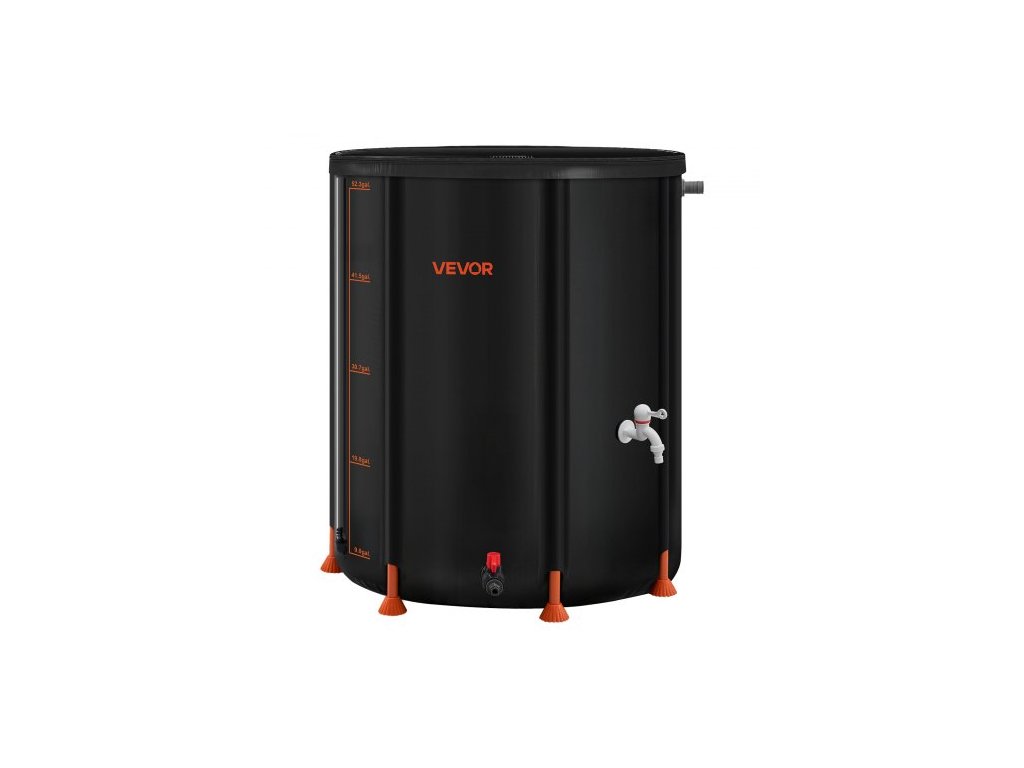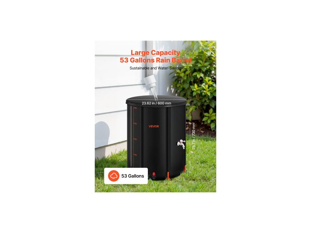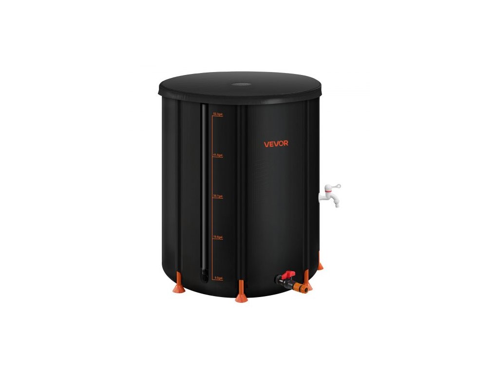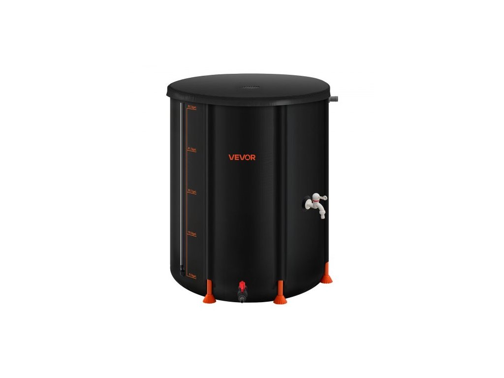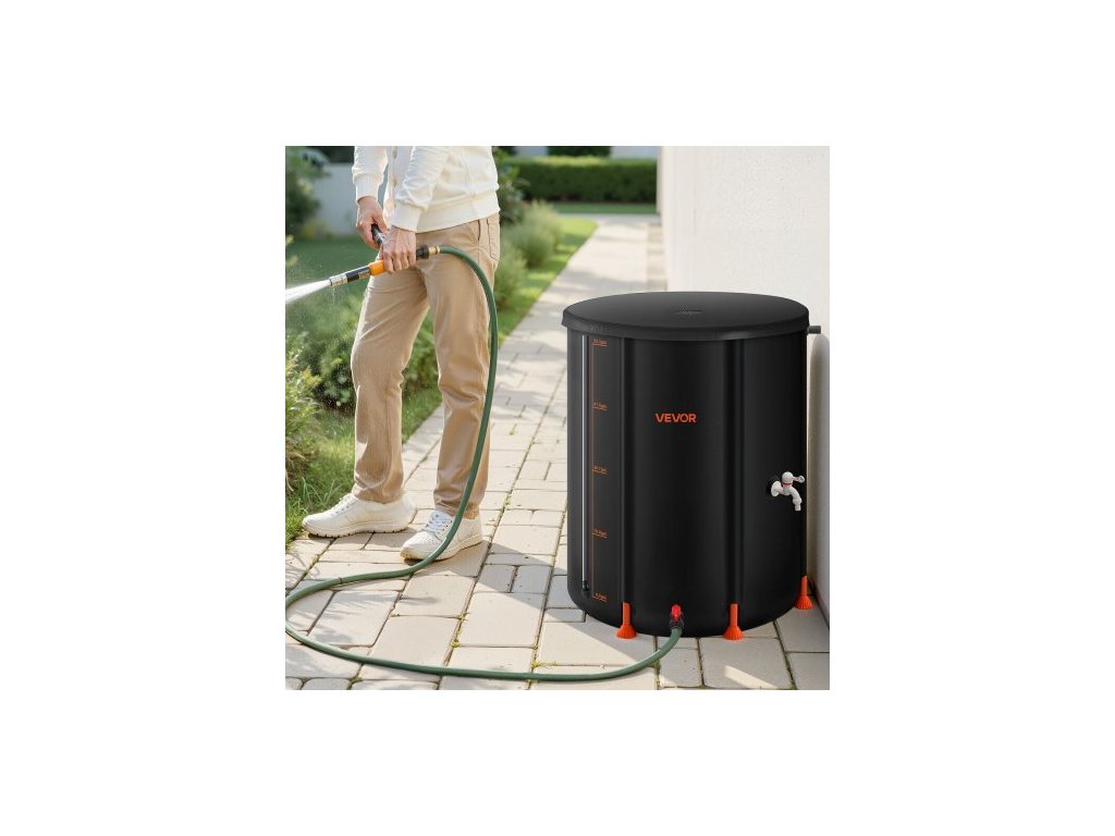 Skládací sud na dešťovou vodu , přenosný sud na dešťovou vodu o objemu 201 l, systém na sběr dešťové vody z PVC 1000D, zahradní nádrž na vodu s kohoutkem a přepadovou sadou, černý