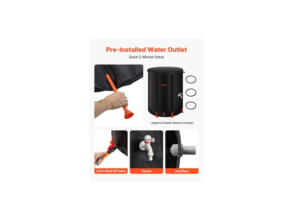 Počet podpěrných tyčí: 6,Provozní teplotní rozsah: -30℃ až +70℃,Číslo modelu položky: RB-0200,Maximální kapacita: 53 galonů / 201 l,Vnější rozměry sudu: Φ23,6 x 28,7 palce / Φ60 x 73 cm,Rozměry výrobku: 26,77 x 23,62 x 29,53 palce / 680 x 600 x 750 mm,Čistá hmotnost: 5,73 lbs / 2,6 kg, Materiál pro uchovávání vody: 1000D PVC