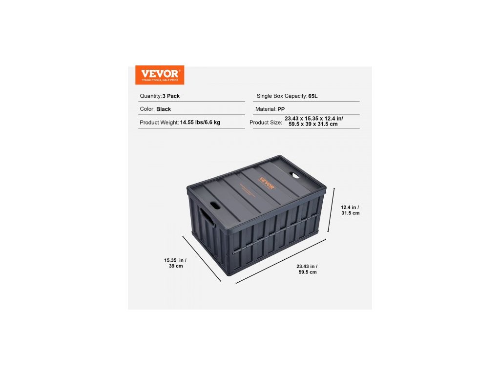 Objem jedné krabice: 65 l, Barva: Černá, Číslo modelu položky: X-6275, Hmotnost výrobku: 6,6 kg, Množství: 3 balení, Materiál: PP, Rozměry výrobku: 59,5 x 39 x 31,5 cm