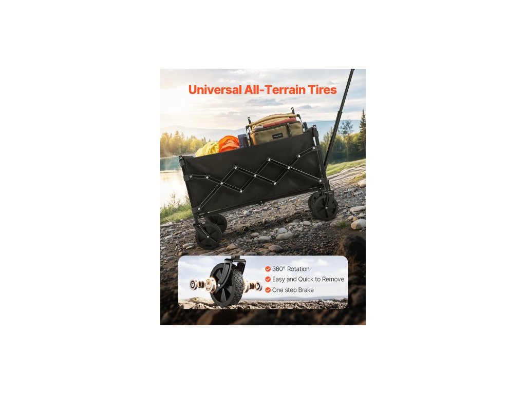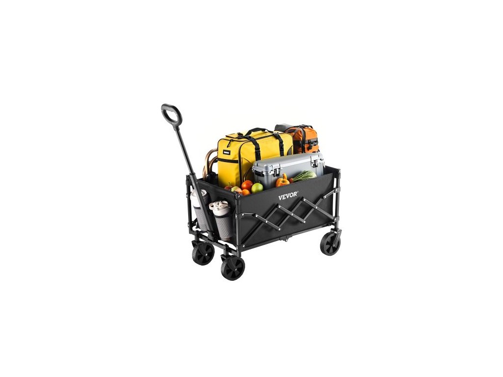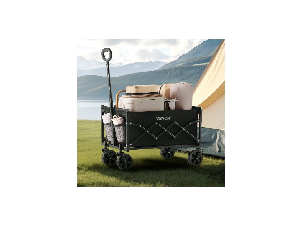 Skládací vozíky , 120l a 225lbs s terénními koly, odolný venkovní užitkový vozík s nastavitelnou rukojetí, přenosný kempingový vozík na pláž, do zahrady, černý2 držáky na nápoje