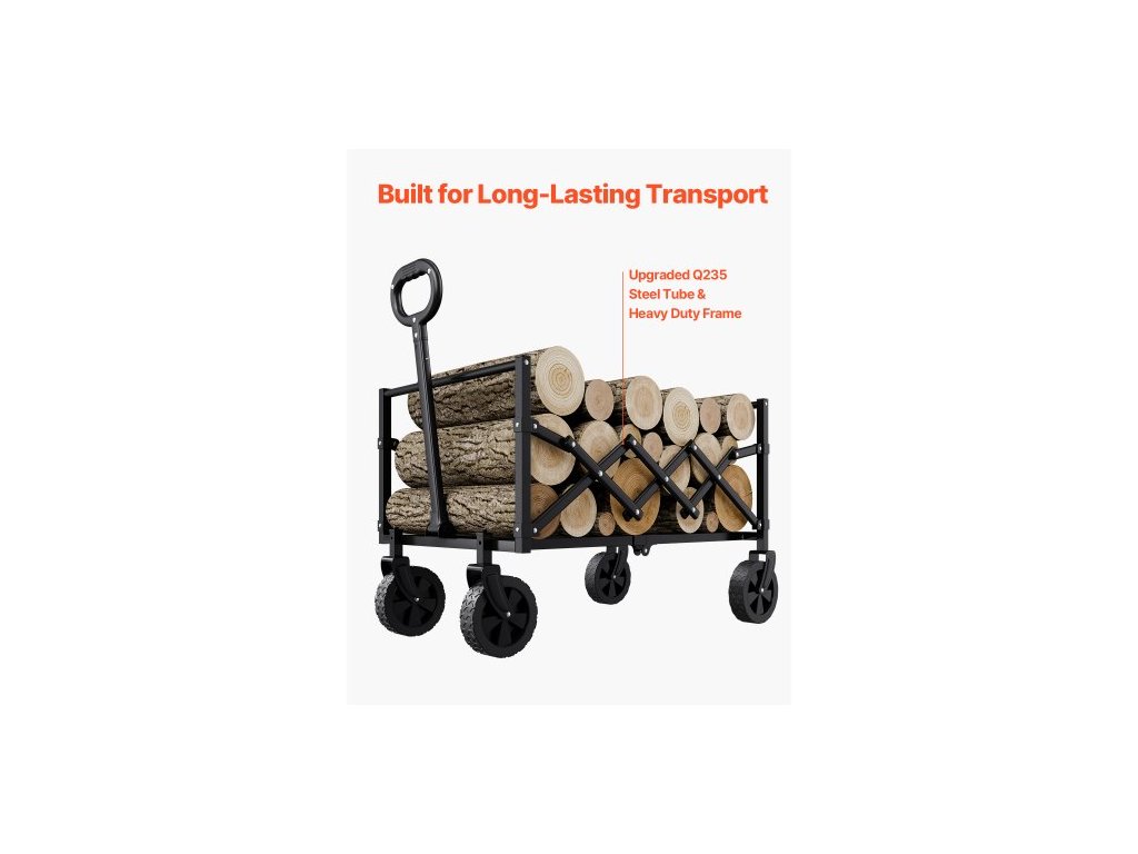Skládací vozíky , 120L a 225LBS s terénními koly, odolný venkovní užitkový vozík s nastavitelnou rukojetí, přenosný kempingový vozík na pláž, do zahrady, černý