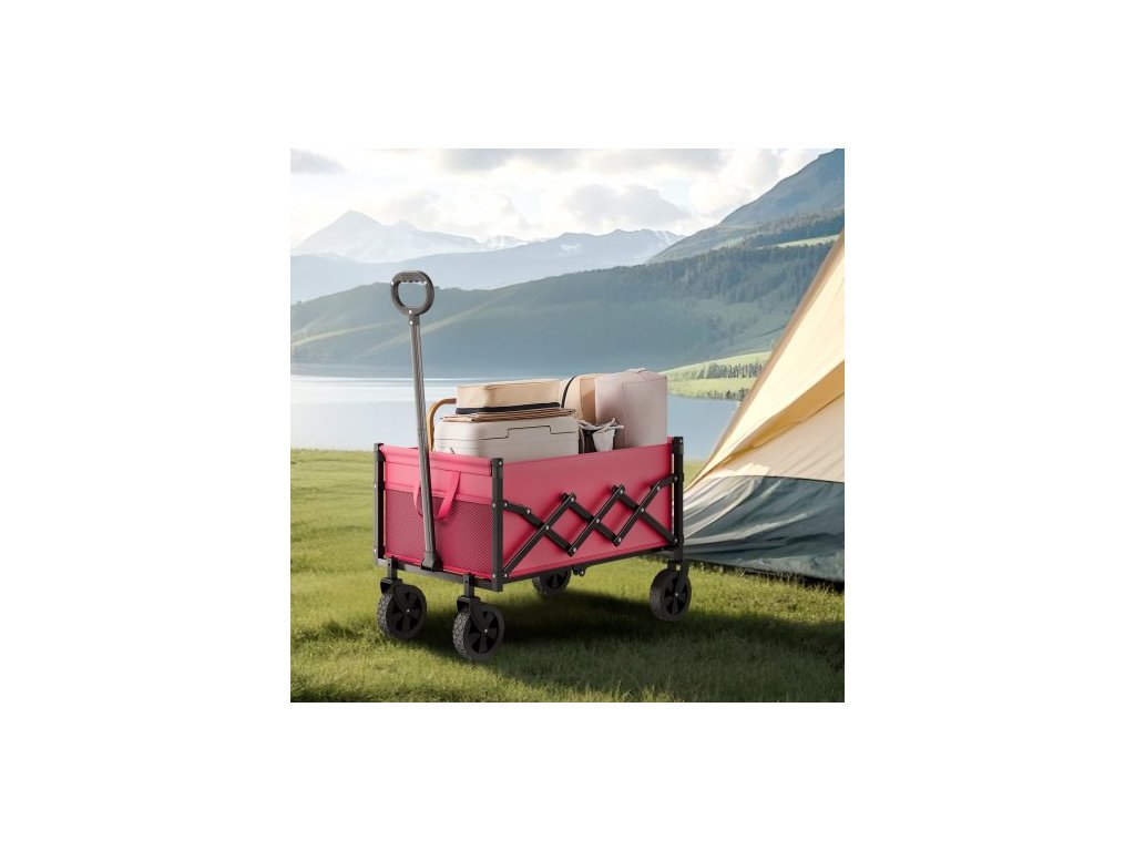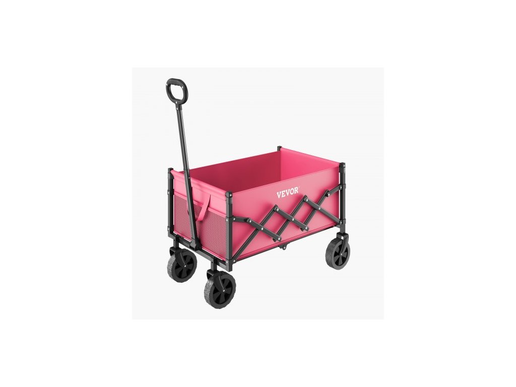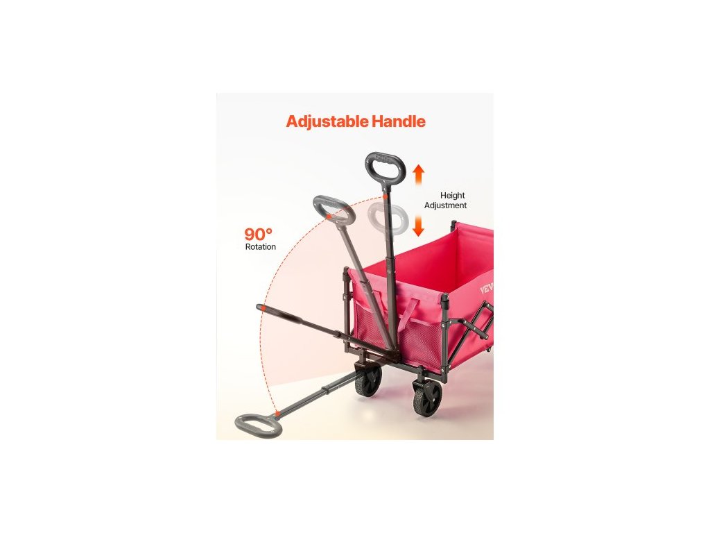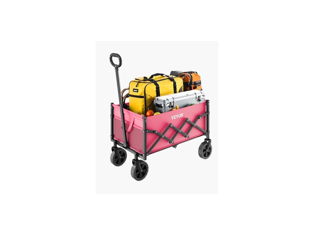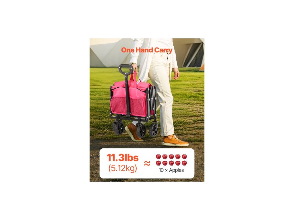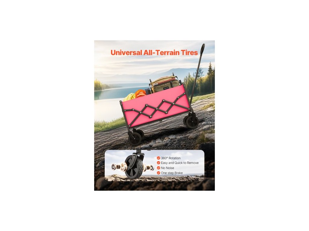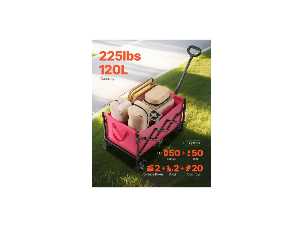 Skládací vozíky , 120l a 225lbs s terénními koly, odolný venkovní užitkový vozík s nastavitelnou rukojetí, přenosný kempingový vozík na pláž, potraviny, zahradu, růžová a černá2 držáky na nápoje