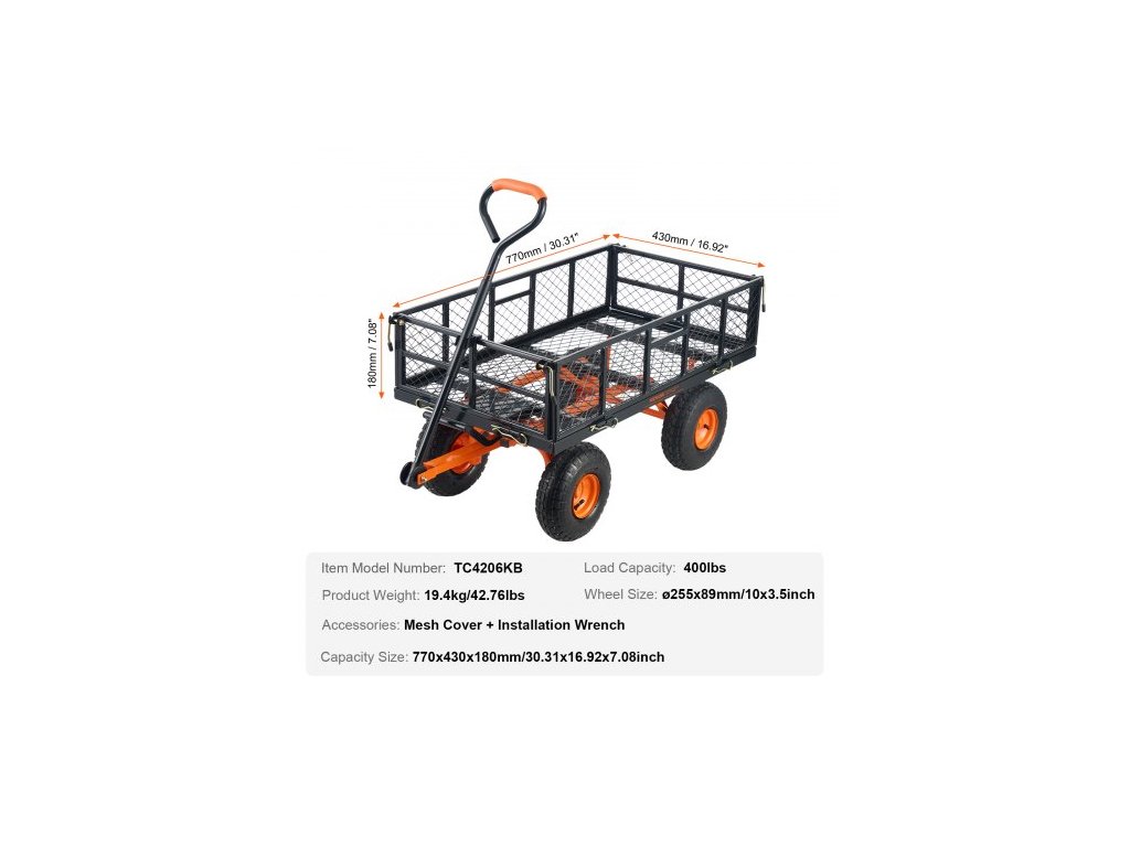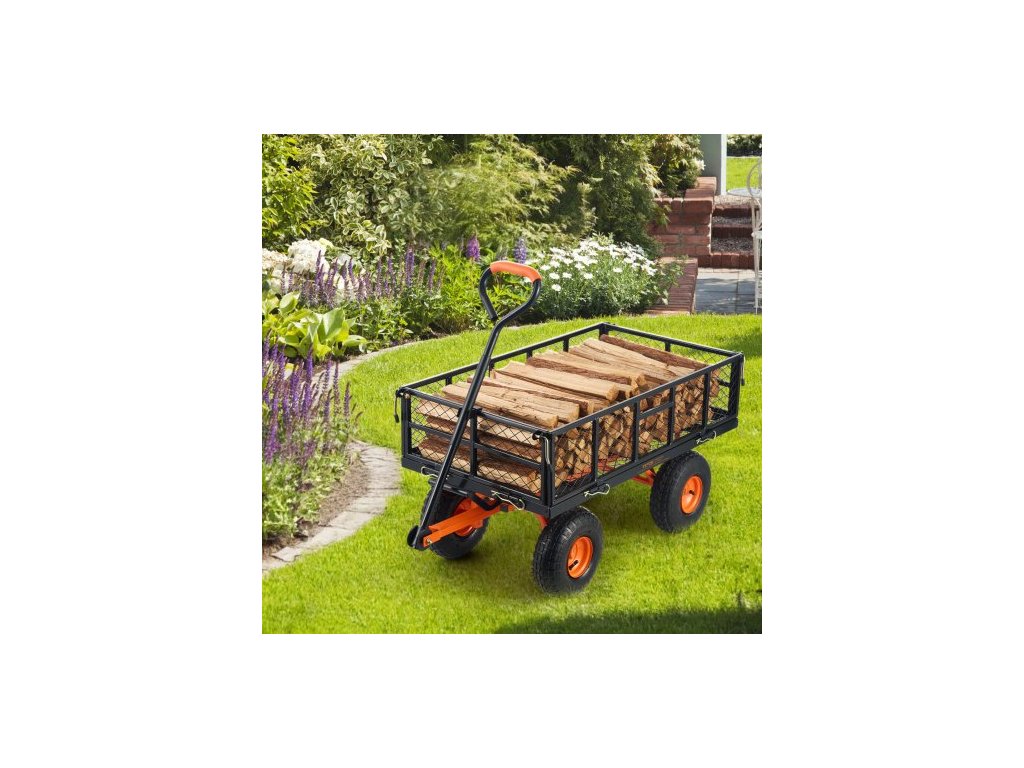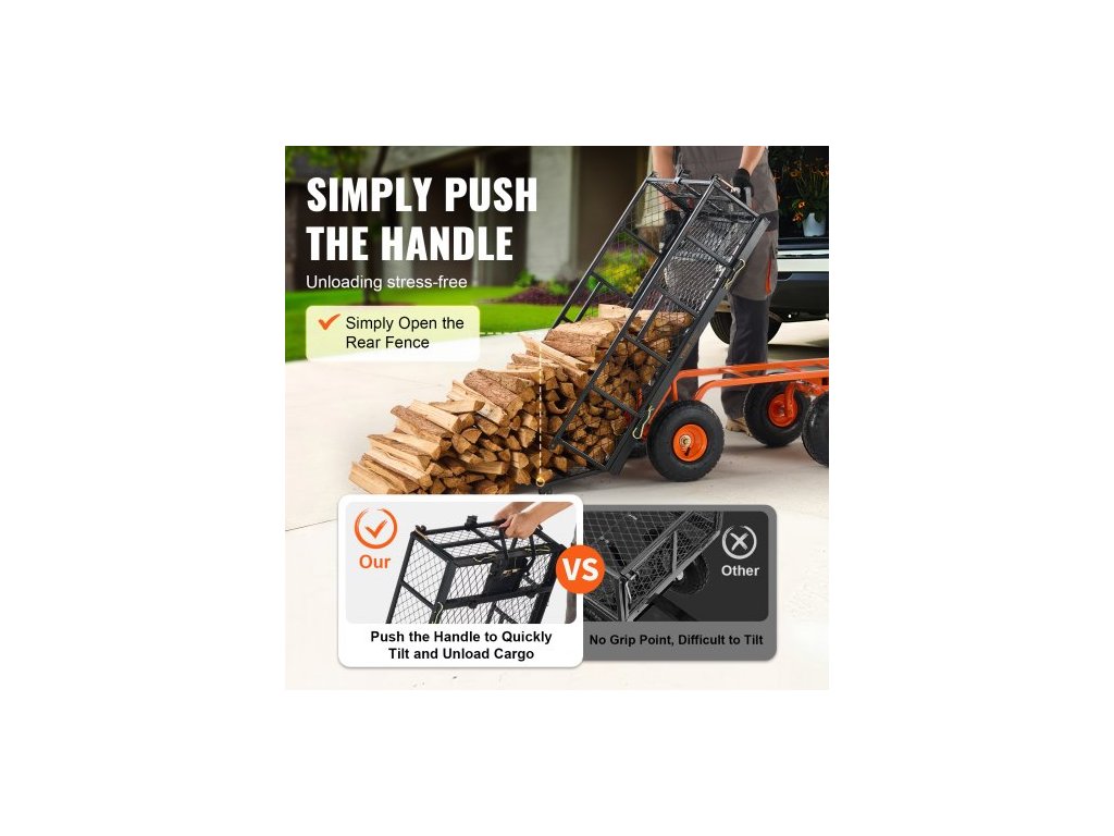 Vyklápěcí vozík, Kovový zahradní vyklápěcí vozík s snadno montovatelným rámem, Vyklápěcí vozík s 2v1 sklopnou rukojetí, Kolečko s nosností 180 kg, 10palcové pneumatikySnadná obsluha