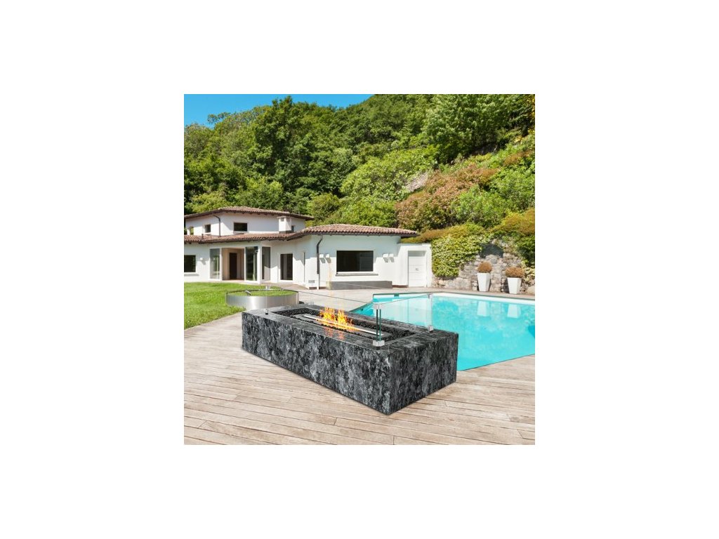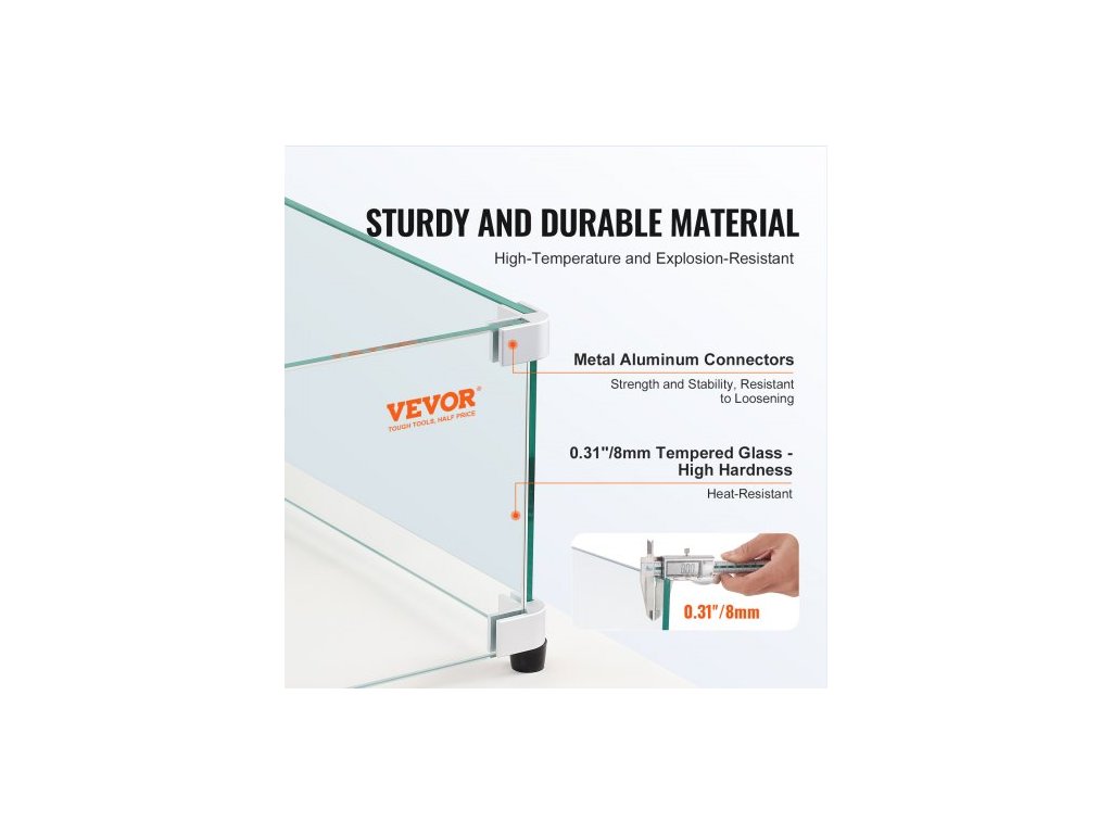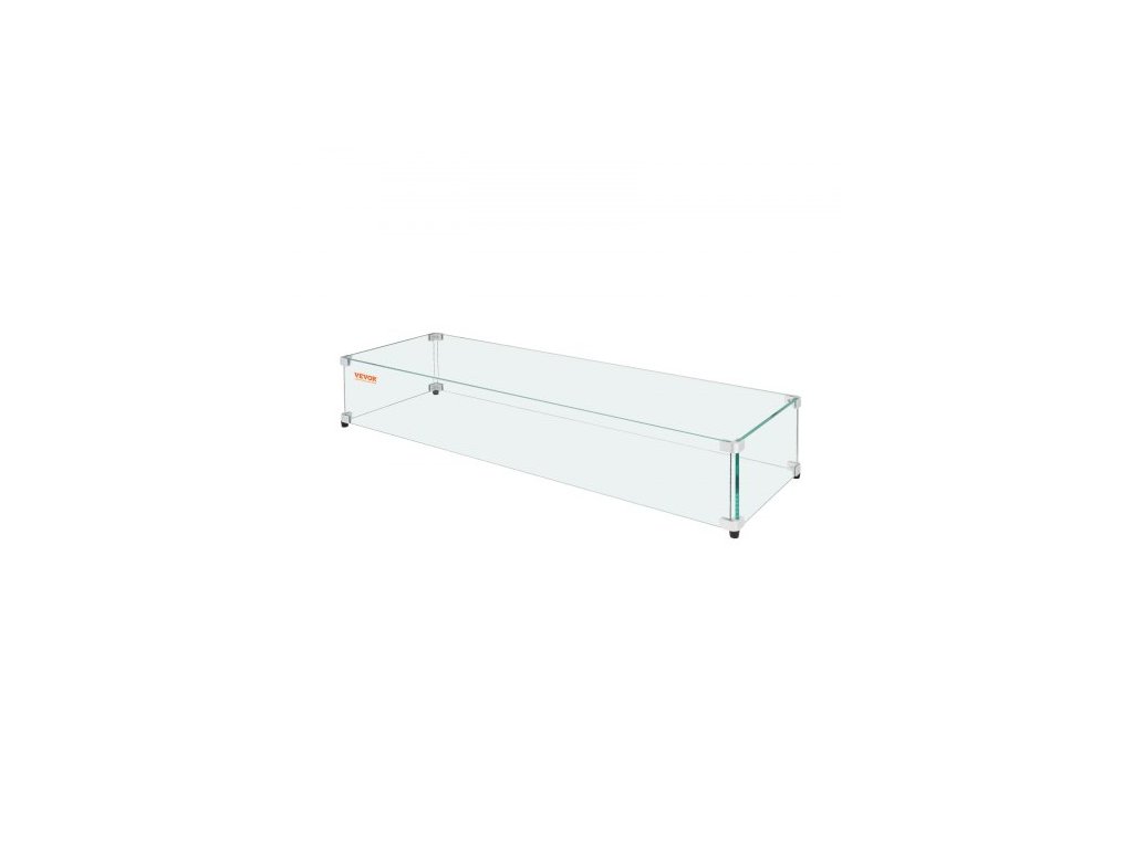 Skleněná větrná clona pro obdélníkový stůl na ohniště 798 x 317 x 165 mm, 8 mm silný a robustní tvrzený skleněný panel s rohovým držákem z tvrdého hliníku a gumovými nožičkami, snadná montážVětruodolná, stabilní a bezpečná