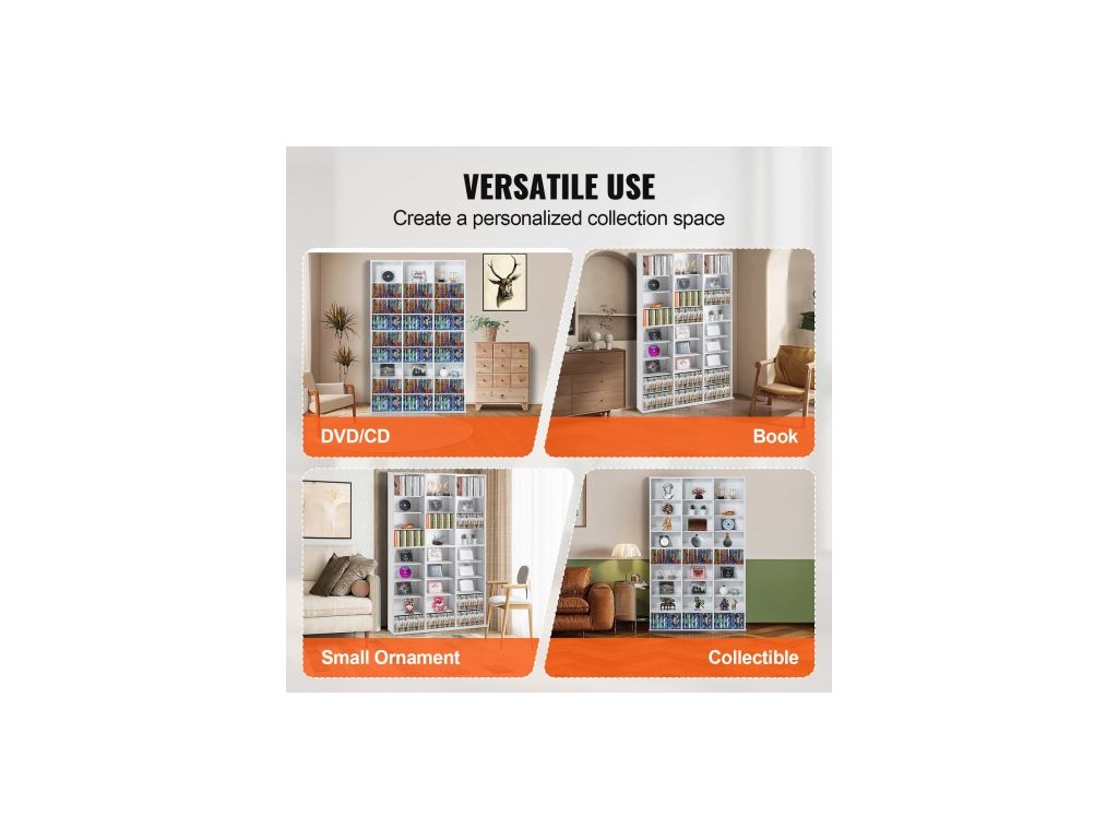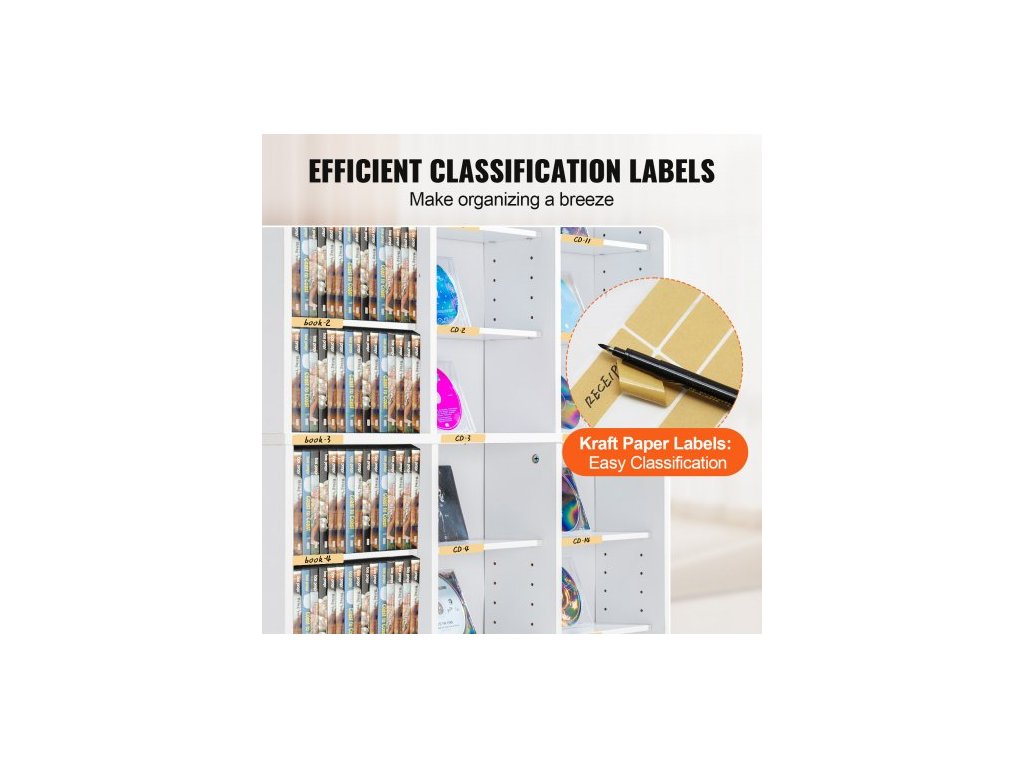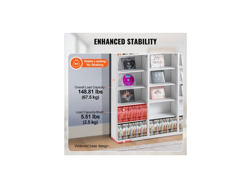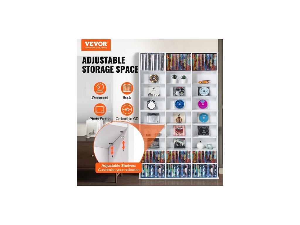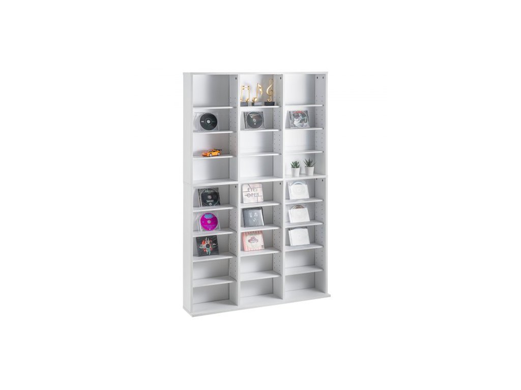 Skříň na média , 9vrstvá DVD police pojme až 756 CD, nastavitelné police na CD, 27 přihrádek, chrání a organizuje hudební, filmové, videohry nebo sbírky memorabilií, bíláPřizpůsobitelný úložný prostor