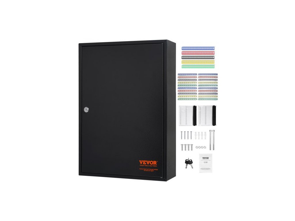 skříňka na 200 klíčů, schránka na klíče s nastavitelnými držáky, bezpečnostní úložná schránka na klíče z oceli, organizér na klíče s 200 barevnými štítky na klíče a 4 záznamovými kartami pro školu, kancelář, hotelPrémiový bezpečnostní zámek