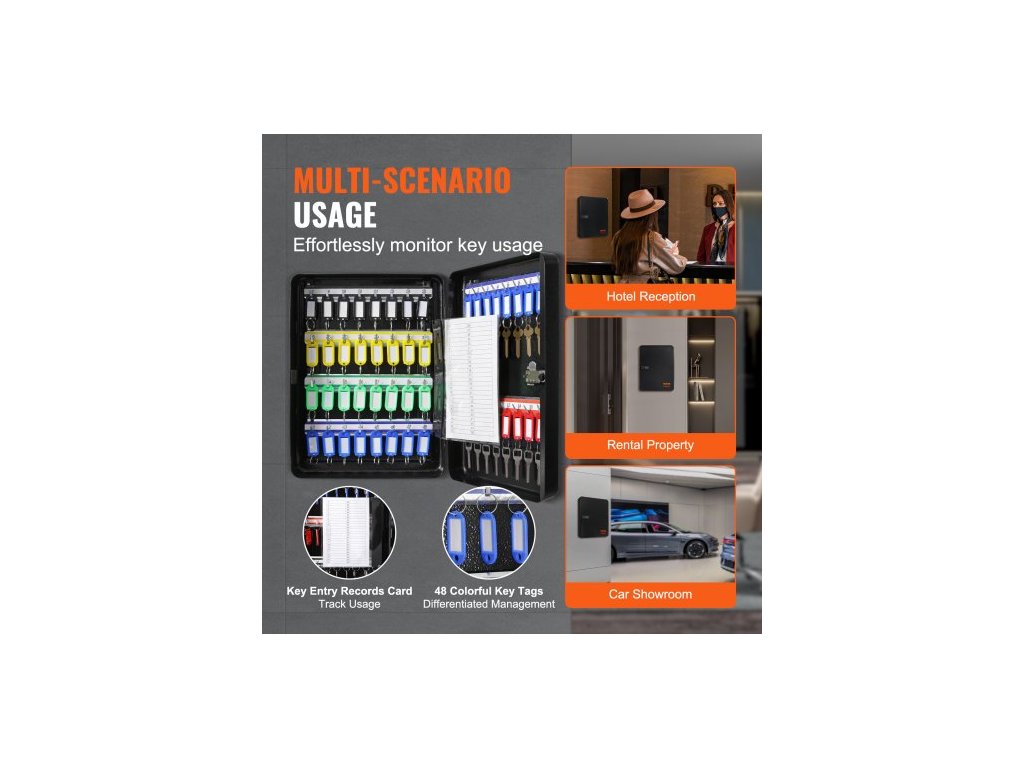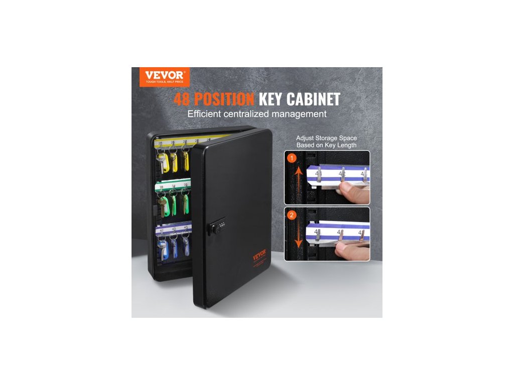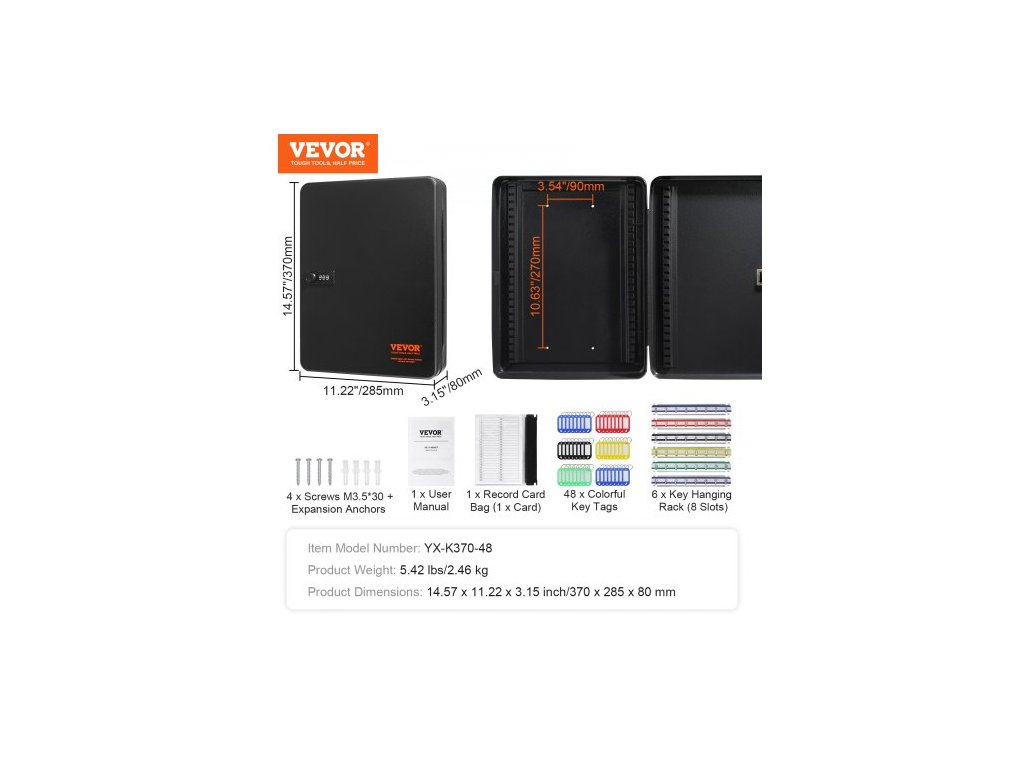 Číslo modelu položky: YX-K370-48,Hmotnost výrobku: 5,42 lbs/2,46 kg,Kapacita klíčů: 48 ks,Rozměry výrobku: 14,57 x 11,22 x 3,15 palce/370 x 285 x 80 mm