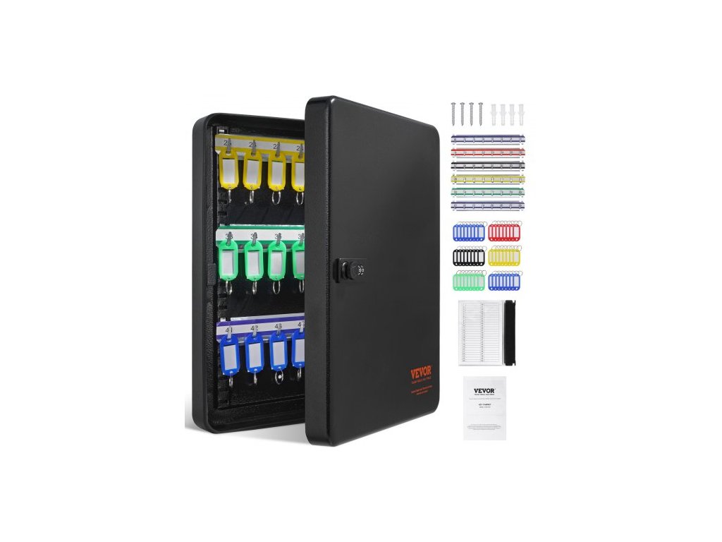 skříňka na 48 klíčů, trezor na klíče s kombinačním zámkem a zámkem na klíče, digitální bezpečnostní úložný box, ocelový organizér na klíče s nastavitelnými poličkami, 48 barevných štítků na klíče a záznamová karta pro školu, kancelář, hotelPrémiový bezpečnostní zámek
