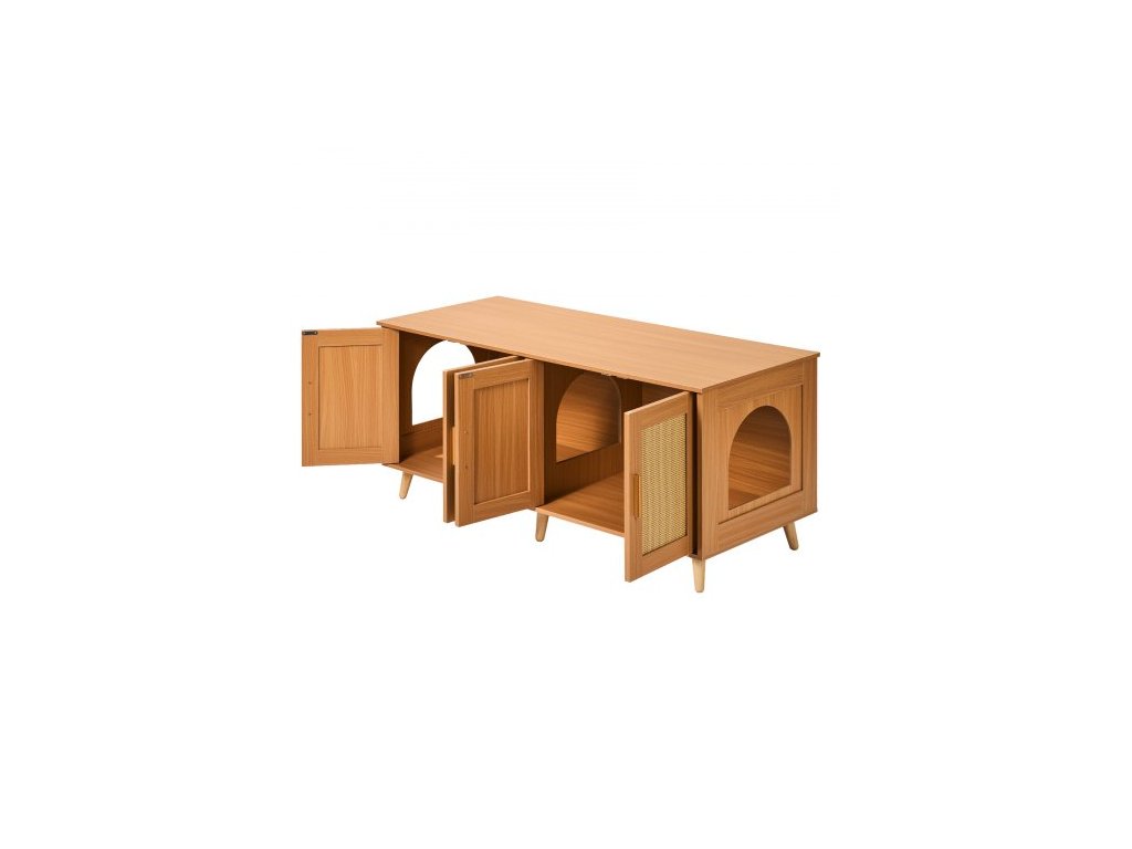 skříňka na kočičí toaletu pro 2 kočky, skrytý nábytek do toalety s ratanovými dvířky, dřevěná skříňka na kočičí toaletu se hodí do většiny kočičích toalet, 122,5 cm D x 48,7 cm Š x 54,4 cm V, přírodní