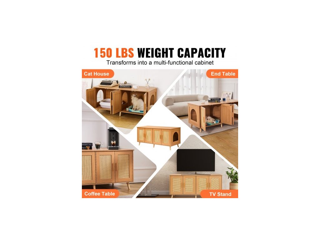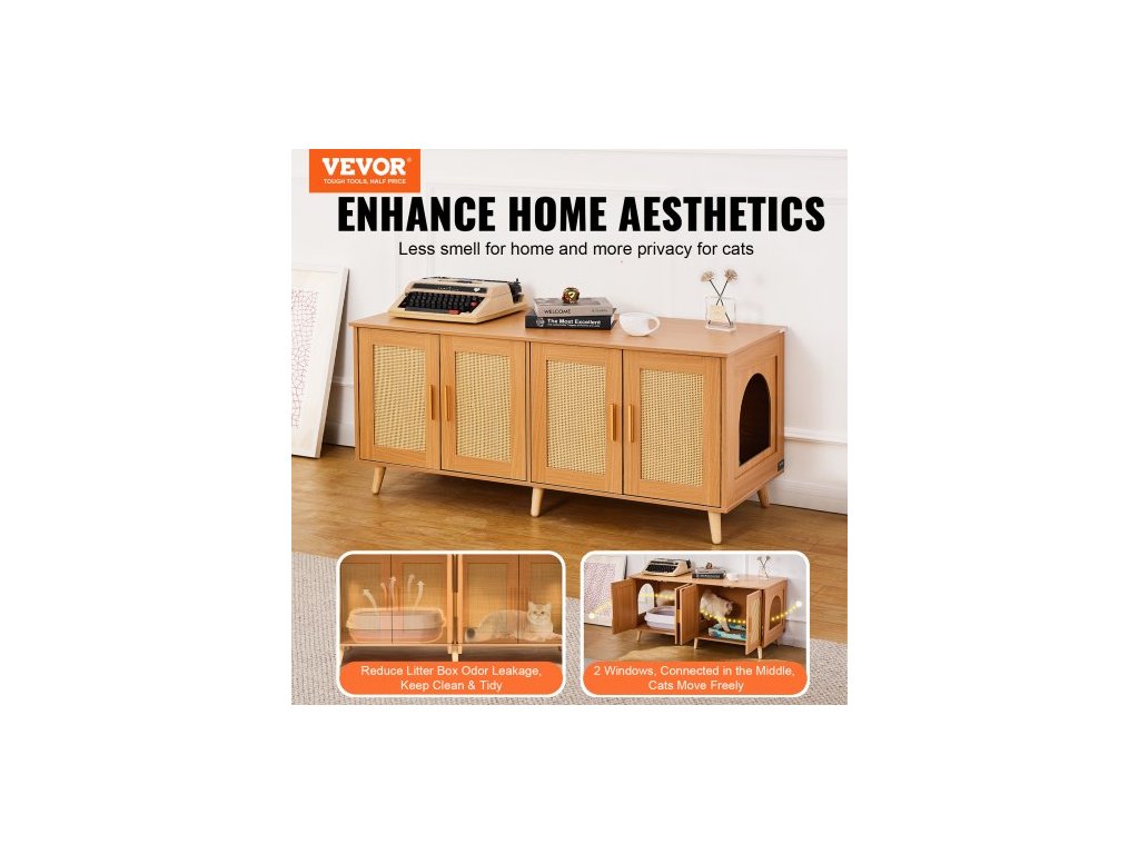 skříňka na kočičí toaletu pro 2 kočky, skrytý nábytek do toalety s ratanovými dvířky, dřevěná skříňka na kočičí toaletu se hodí do většiny kočičích toalet, 122,4 cm D x 49,7 cm Š x 54,4 cm V, přírodníZkrášlete si domácí prostředí
