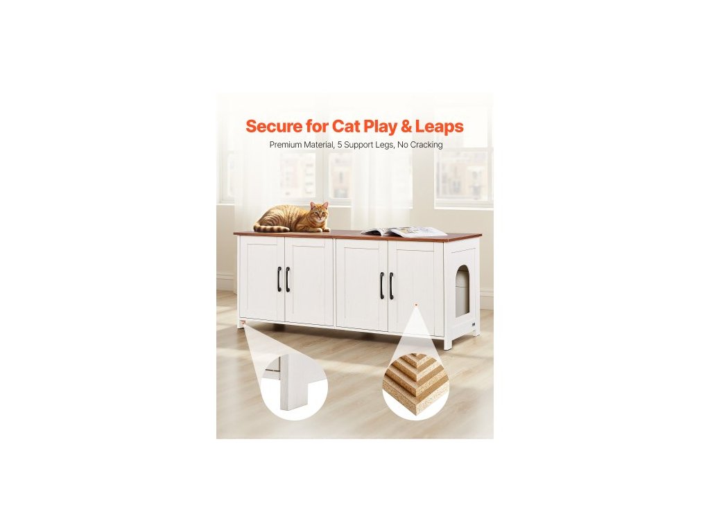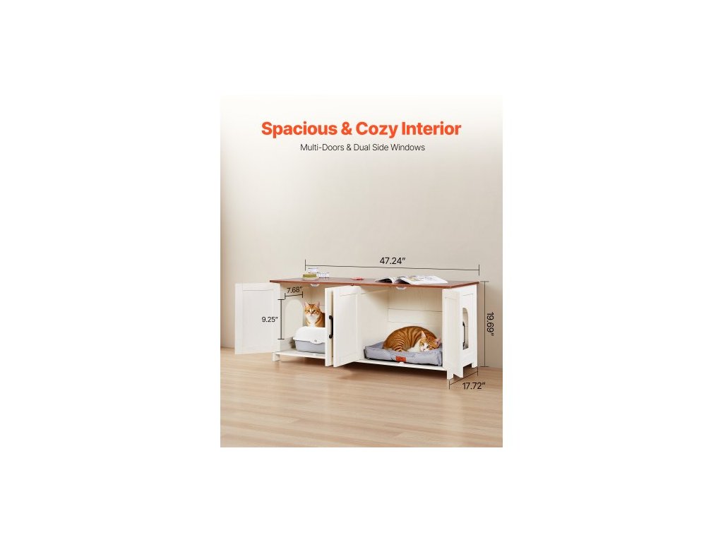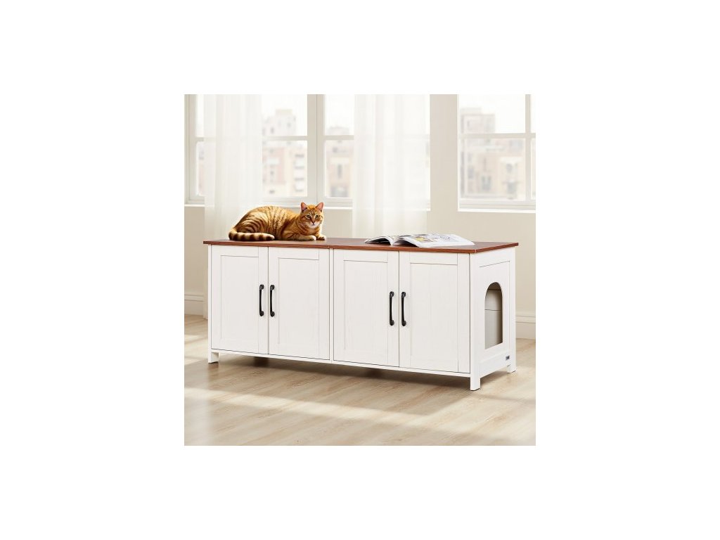 skříňka na kočičí toaletu pro více koček, 120 cm skrytá skříňka na toaletu se 4 dvířky a 2 vchody, vnitřní kočičí toaleta, dřevěný nábytek pro kočičí toaletu, vhodný pro většinu kočičích toalet, hnědá a bíláStylová a funkční
