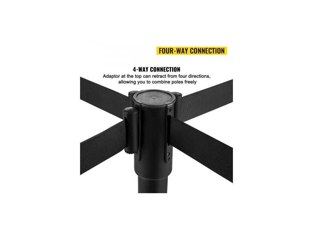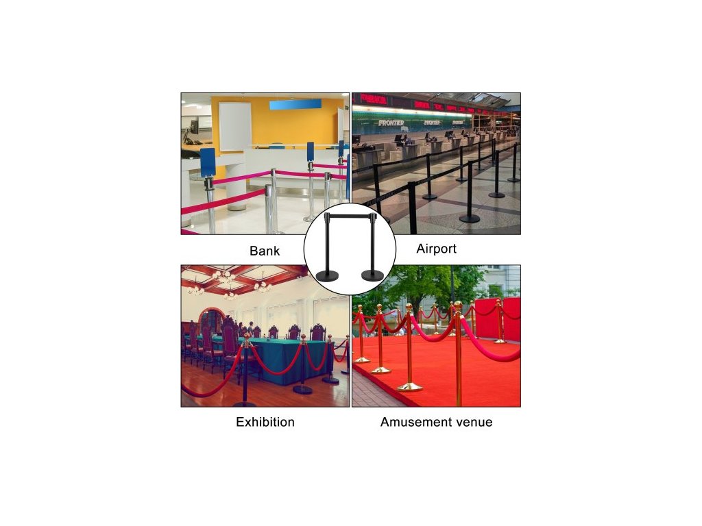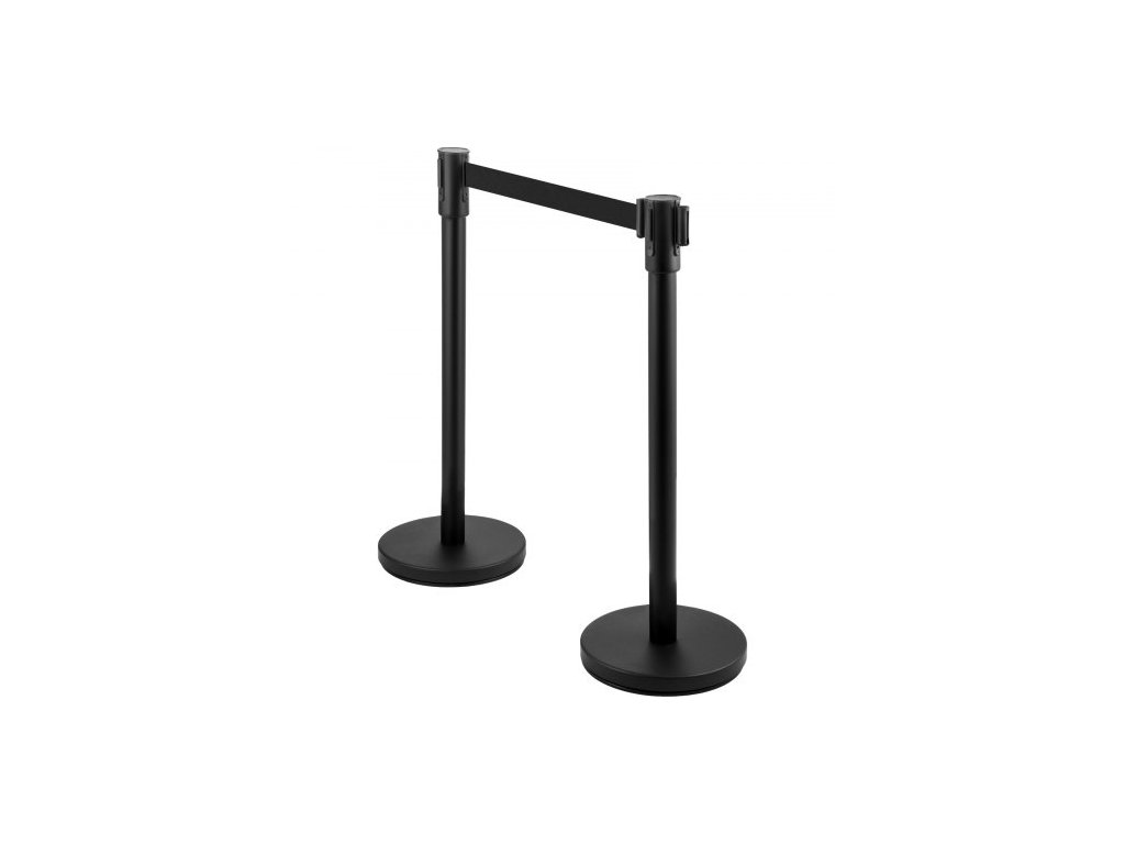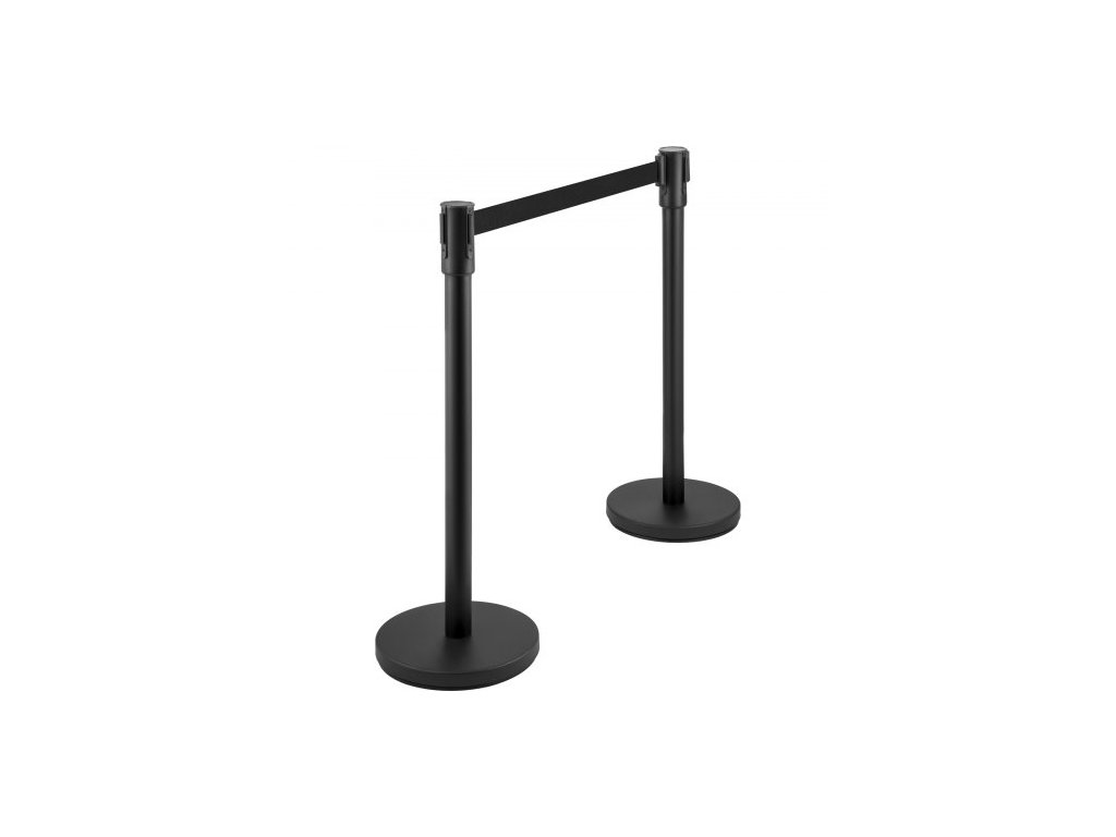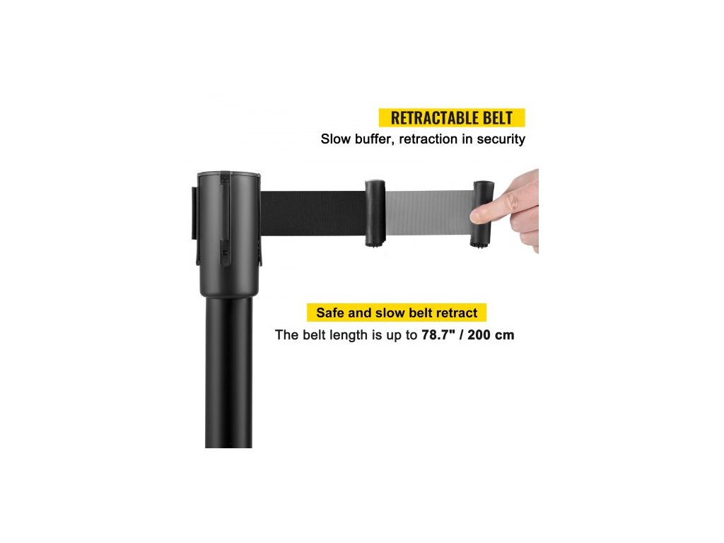 Sloupek pro regulaci davu, sada 8 dílů, sada sloupků s 2m černým navíjecím pásem, černá zábrana pro regulaci davu s betonovou a kovovou základnou – snadná montáž