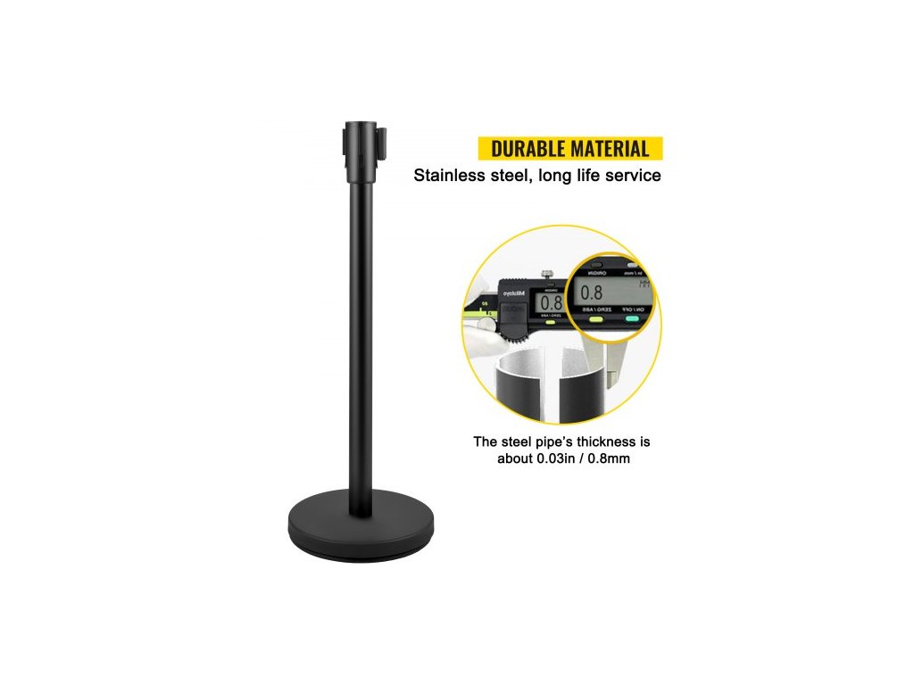 Celková výška: (přibližně) 90 cm, průměr základny: 32 cm, model: VV-SS-BLBLB8DT, tloušťka stěny tyče: 0,8 mm, délka pásu: 2 m, hlavní materiál: železo a ocel, barva pásu: černá, hmotnost položky: 48 kg