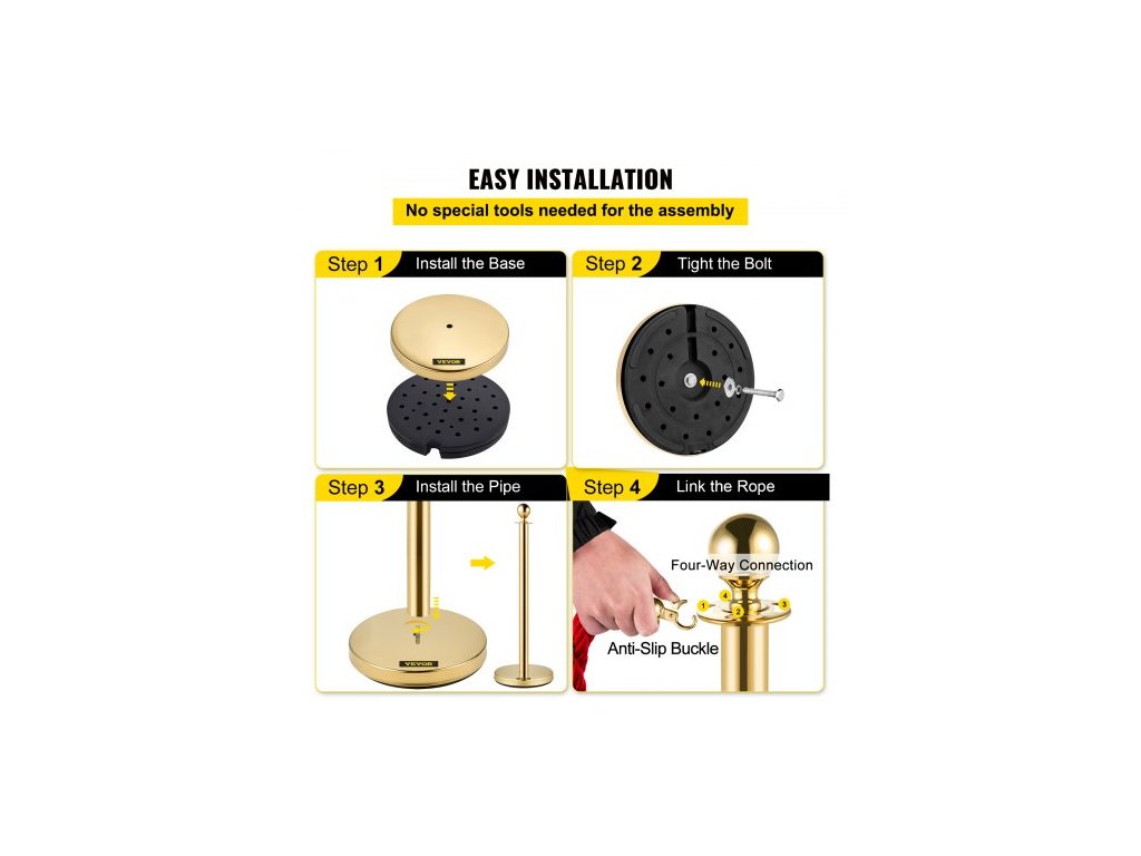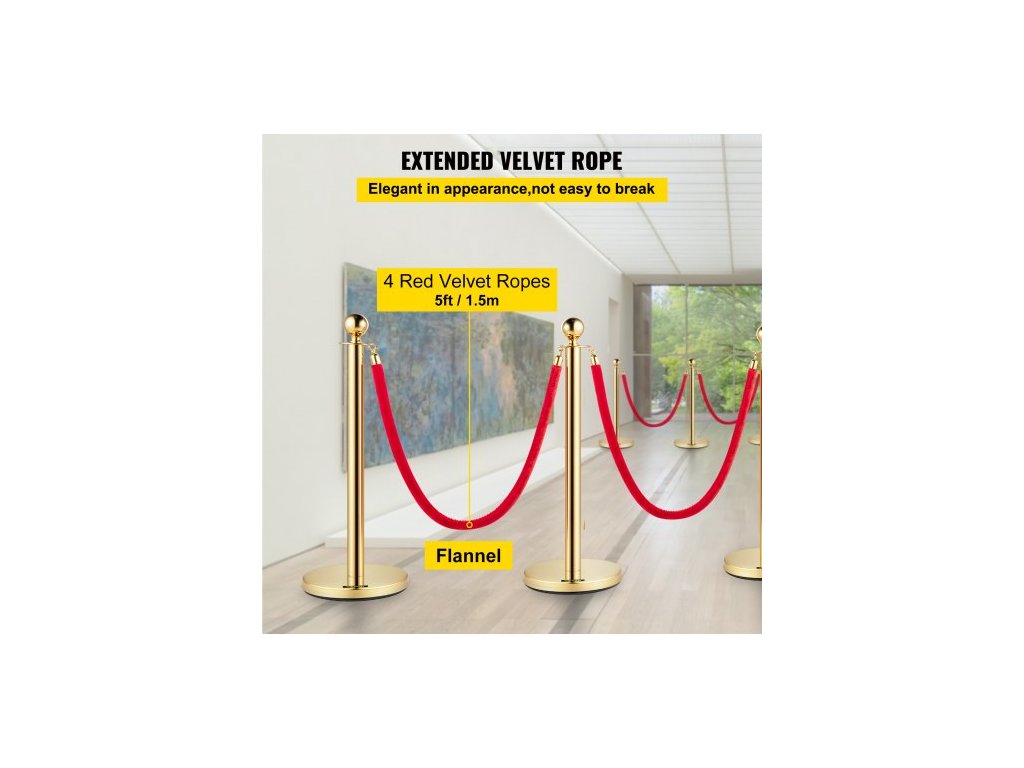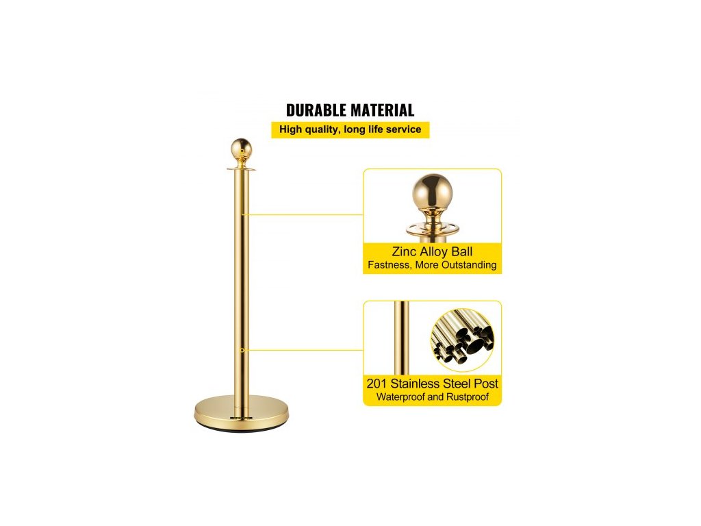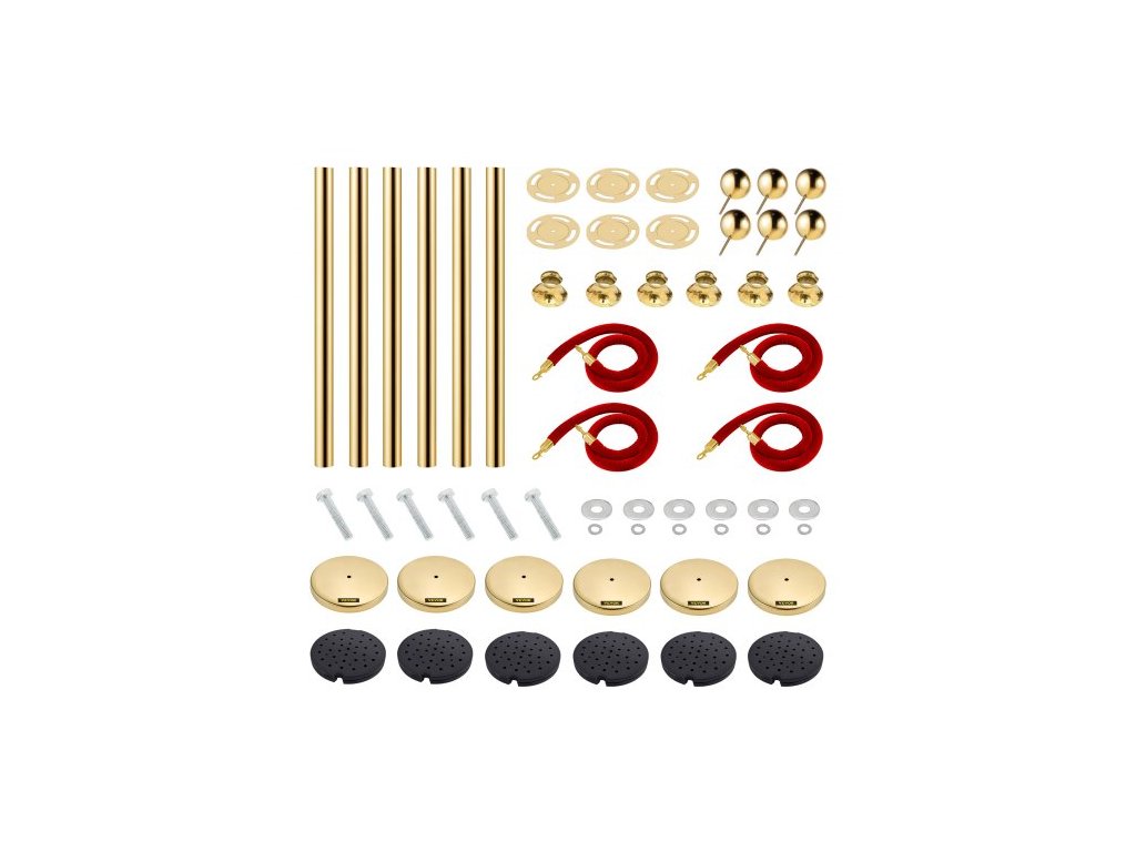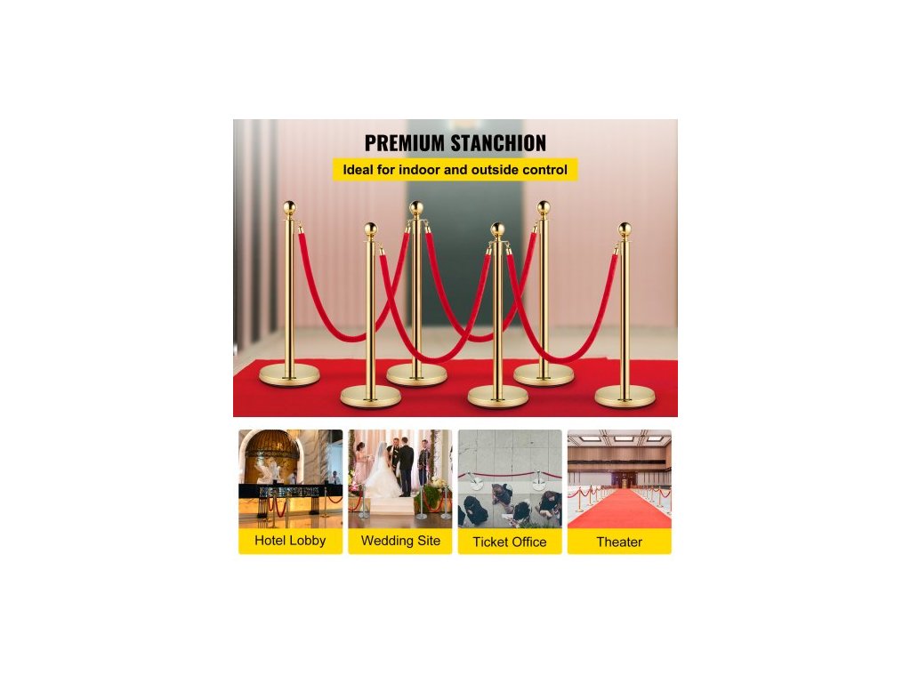 Celková výška: 37,4 palce / 95 cm,Průměr základny: 12,6 palce / 32 cm,Materiál lana: Samet,Model: Zlaté sloupky 6 ks,Materiál sloupu: Nerezová ocel, slitina zinku,Hmotnost položky: 29 liber / 13 kg,Průměr trubky: 2 palce / 5,1 cm,Délka lana: 5 stop / 1,5 m,Barva lana: Červená