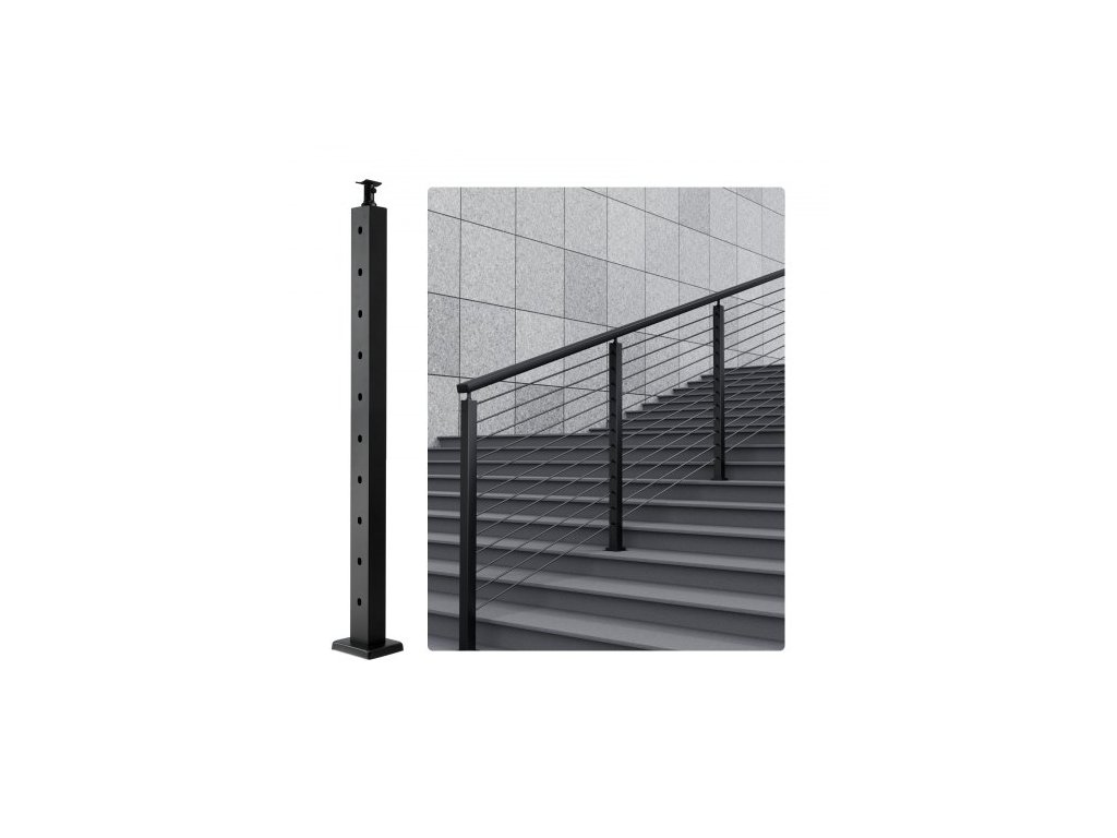 Sloupek zábradlí pro kabely 36x2x2in/91,4x5,1x5,1 cm, schodišťový sloupek s úhlovým otvorem 30°, černý, 1 ksSloupek zábradlí s úhlovým otvorem 30°