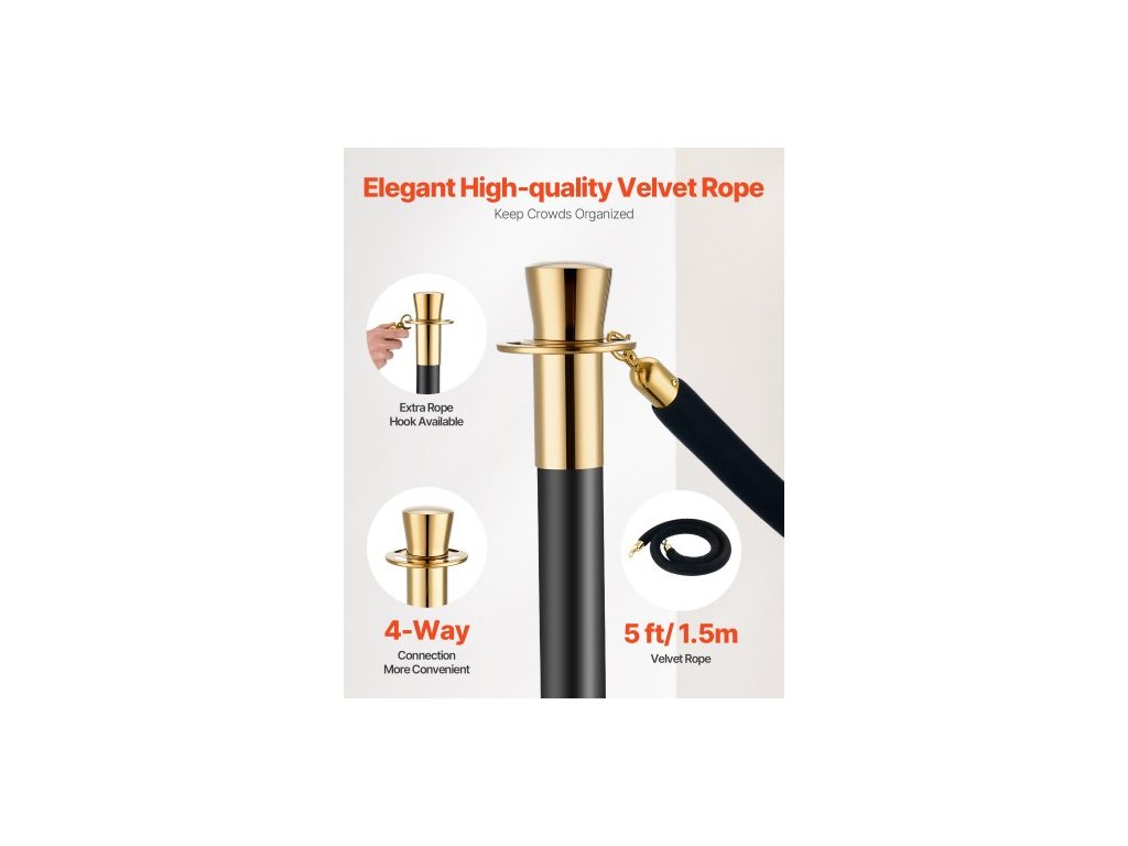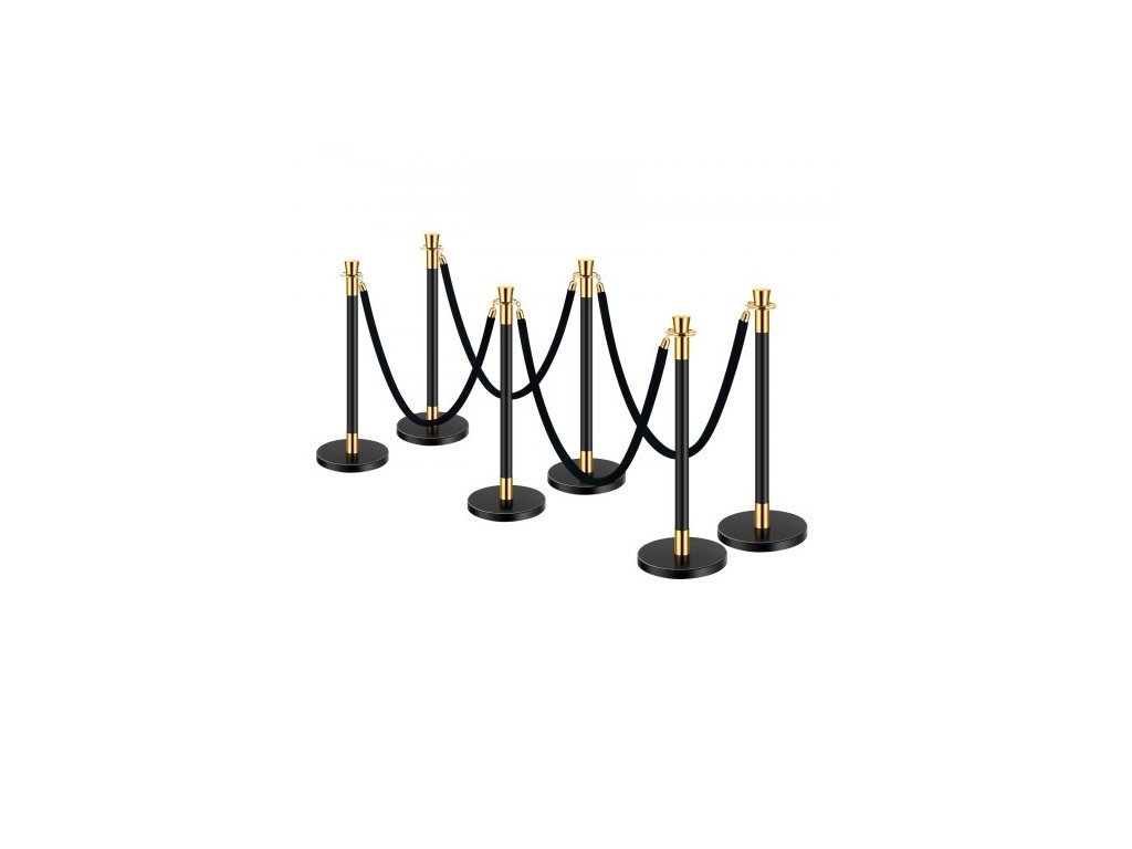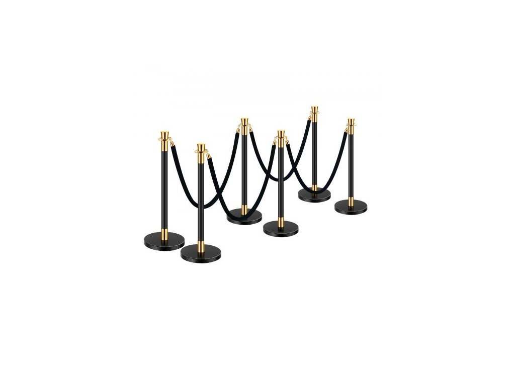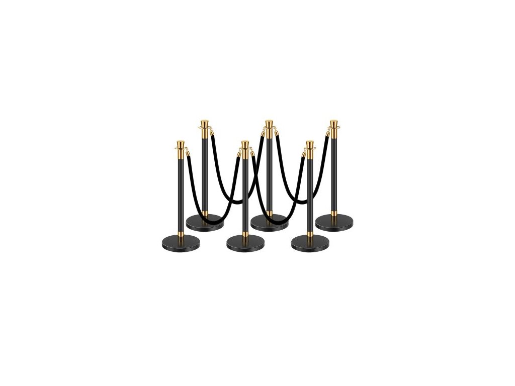 Sloupky, 6 ks zábran pro kontrolu davu se 4 černými sametovými lany, fronta z nerezové oceli o délce 5 stop s dutou základnou z pískové vstřikovací hmoty pro divadlo, večírek, svatbu, výstavu, černá
