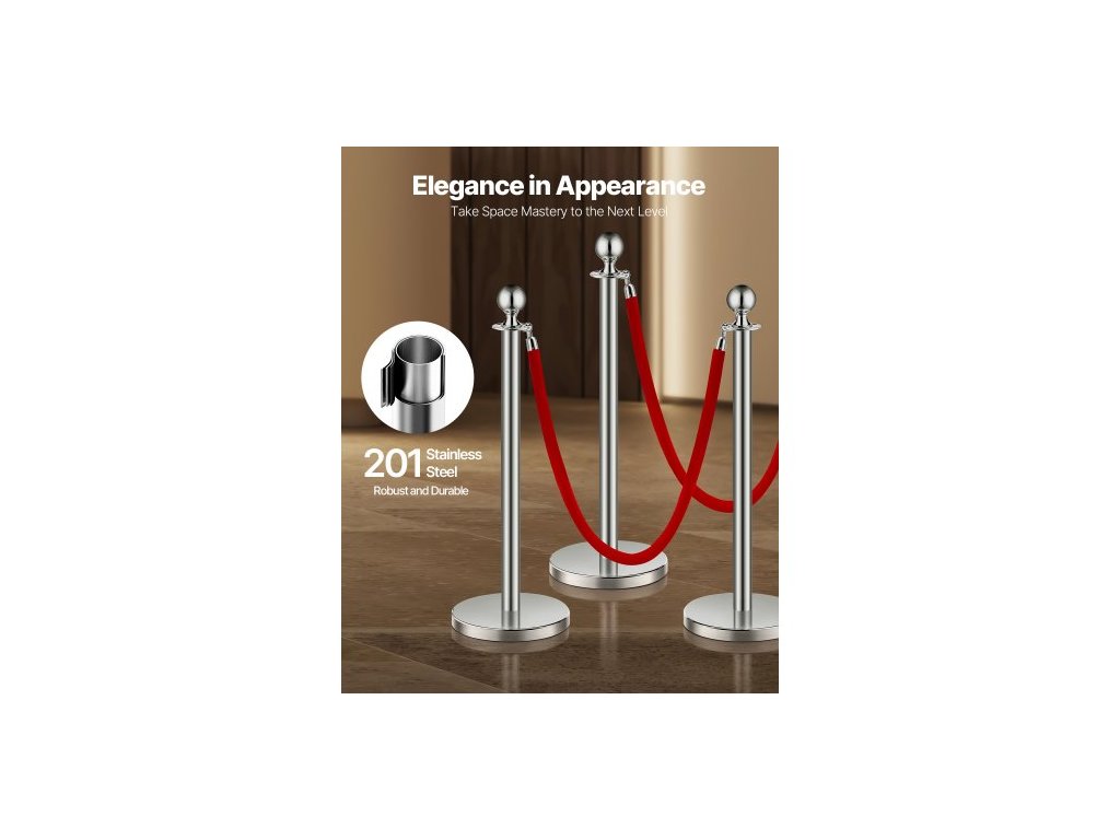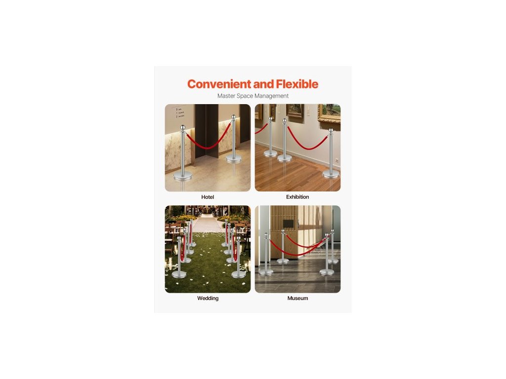Sloupky, sada 6 kusů pro regulaci davu se 3 červenými sametovými lany, fronta ze stříbrných sloupků z nerezové oceli o délce 5 stop s dutou základnou pro vstřikování písku pro divadlo, večírek, svatbu, výstavuElegantní a odolná