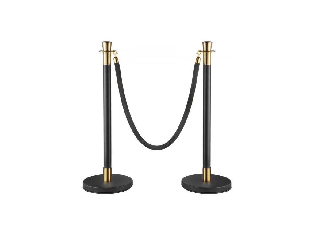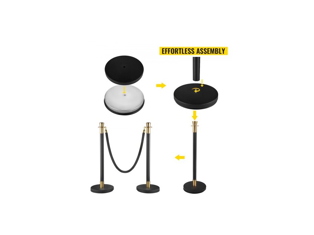 Sloupek pro regulaci davu, sada 6 kusů, sada sloupků s černým sametovým lanem o délce 1,5 m, černá zábrana pro regulaci davu s pevnou betonovou a kovovou základnou – snadná montážOdolná konstrukce