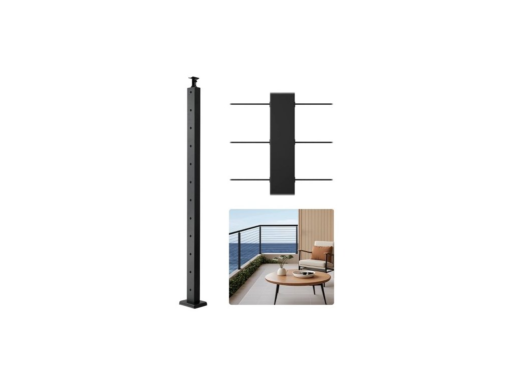 Sloupek zábradlí pro kabely, rovné schodišťové sloupky 42x1x2 palce, sada 1 nerezových sloupků pro kabelové zábradlí, předvrtané tyče s montážní konzolou, sada pro zábradlí schodů, černá, 1JZLGZXHS1063GGTD001V0Sloupek zábradlí s horizontálními otvory