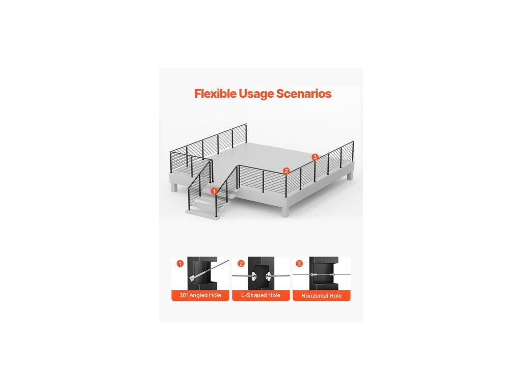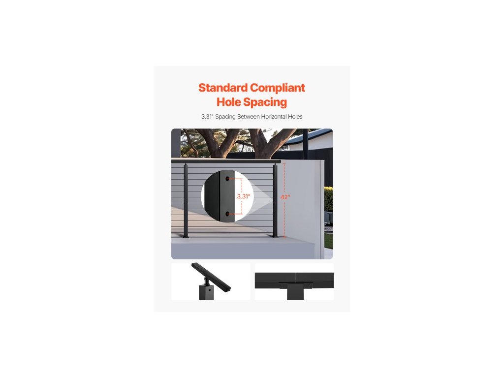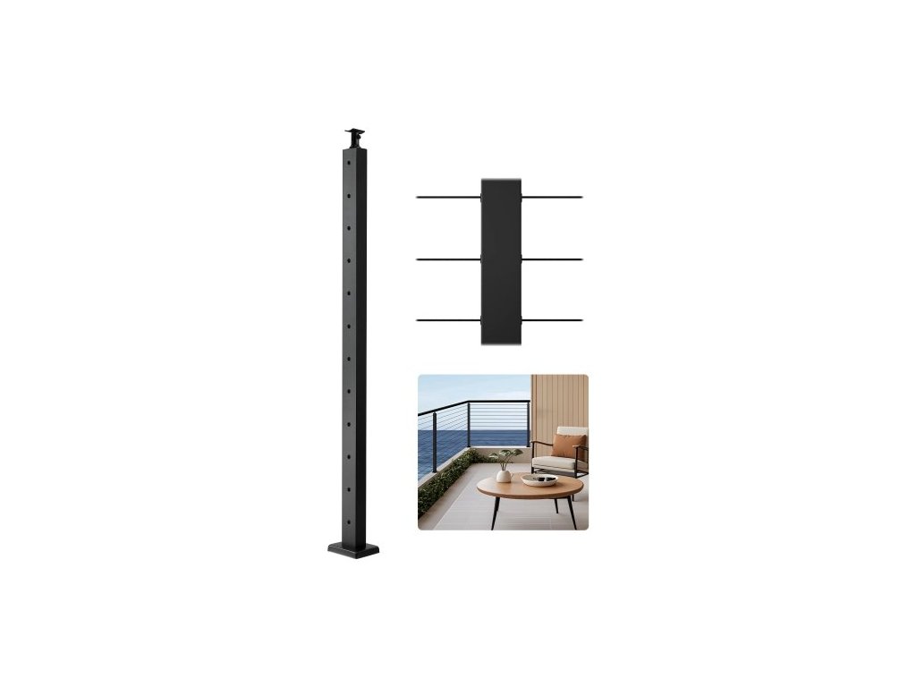 Sloupek zábradlí pro kabely, rovné schodišťové sloupky 42x2x2 palce, sada 1 nerezových sloupků pro kabelové zábradlí, předvrtané tyče s montážní konzolou, sada pro zábradlí schodů, černá, 1JZLGZXHS106AWJO6001V0Sloupek zábradlí s horizontálními otvory