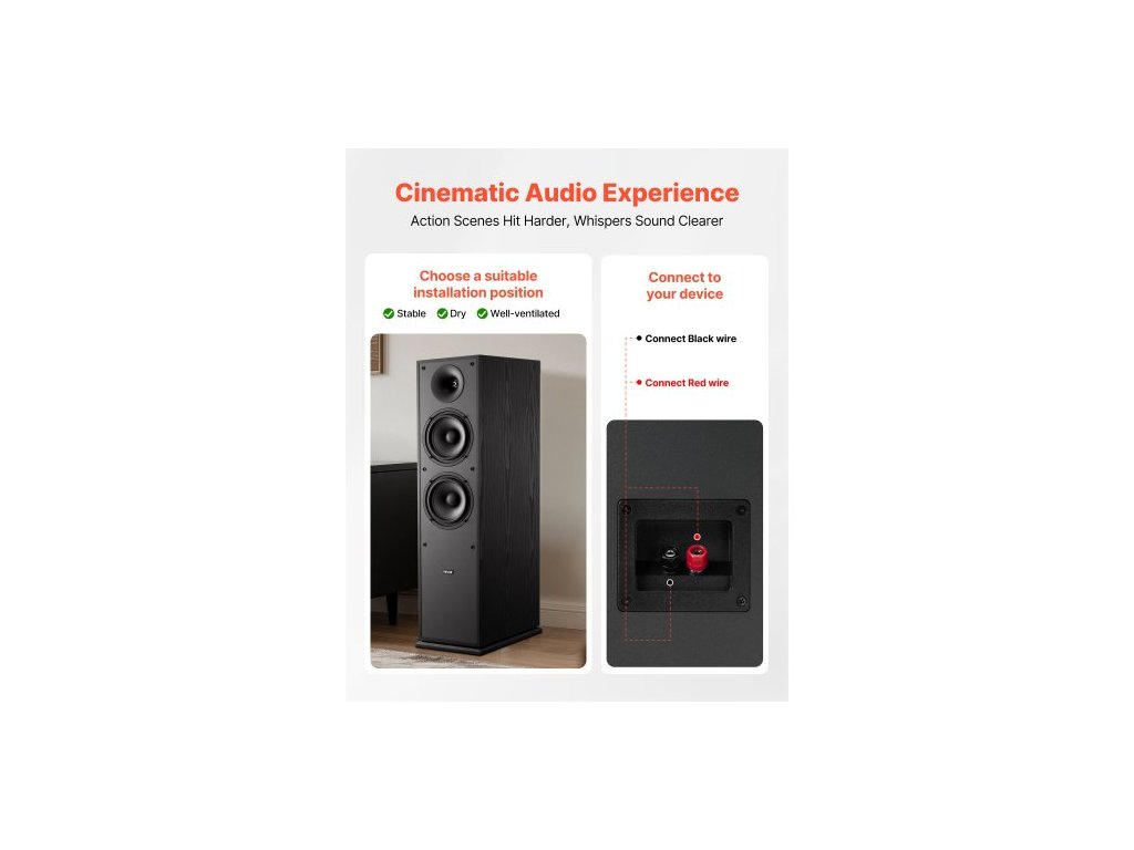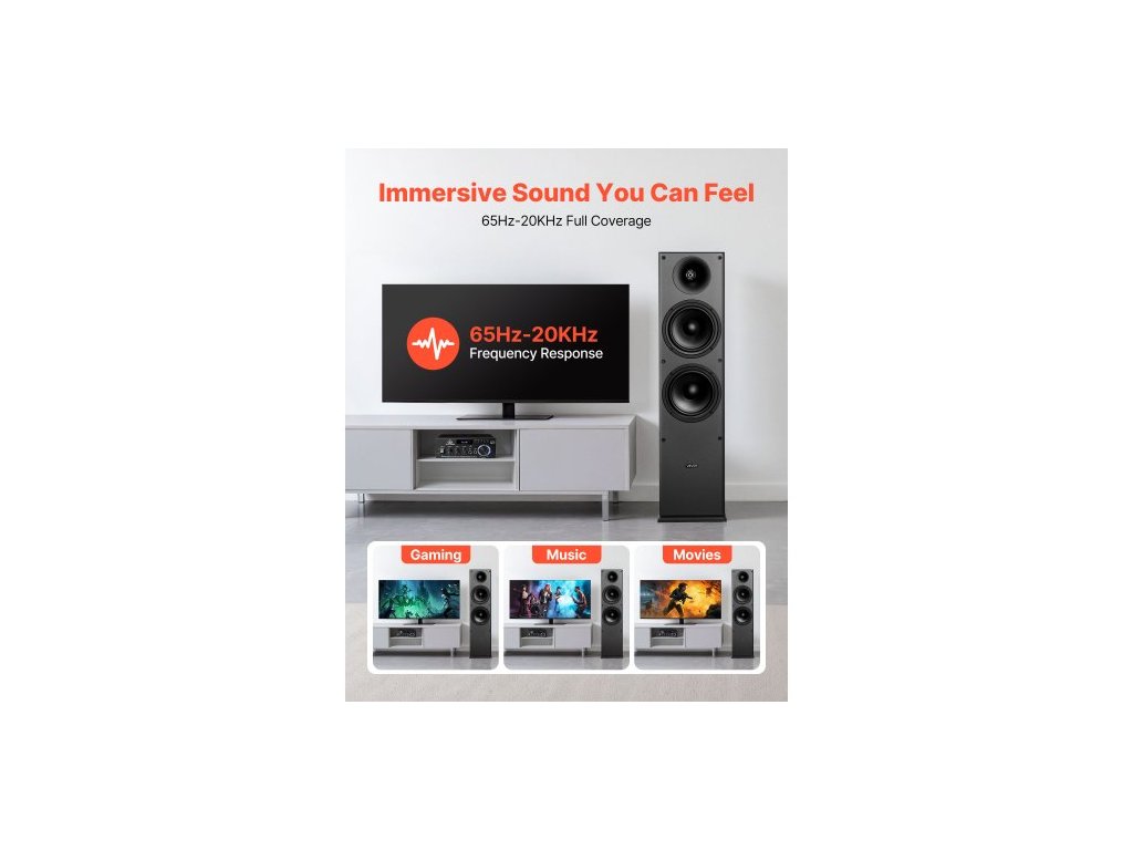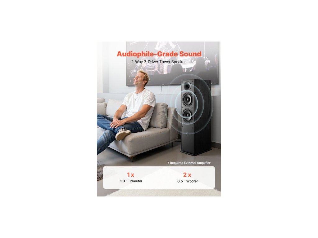 Sloupové reproduktory , 2pásmové, sloupové reproduktory s 25,4mm výškovým reproduktorem, duální 165,1mm basové reproduktory, špičkový výkon 400 W, frekvenční odezva 65 Hz–20 kHz, odolná MDF skříň, pro domácí audio, pár1palcového výškového reproduktoru