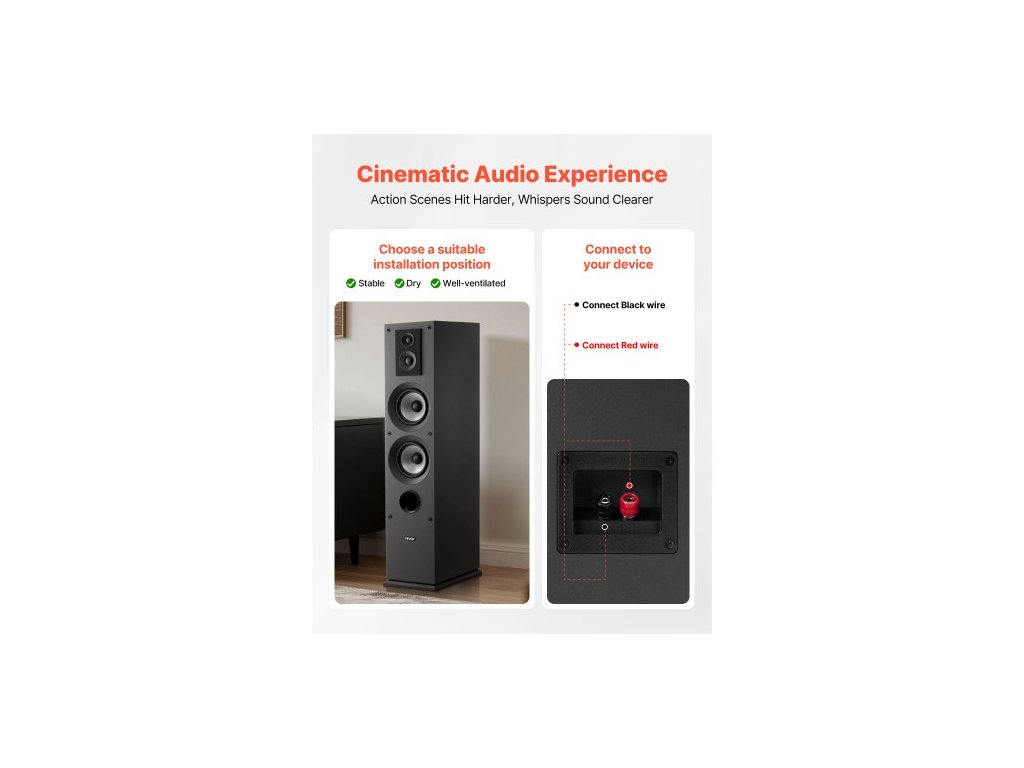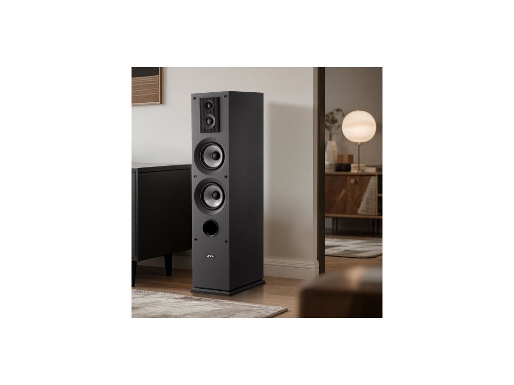 Sloupový reproduktor , 3pásmový, sloupový reproduktor s výškovým reproduktorem 19,05 mm a 25,4 mm, duální basové reproduktory 133,35 mm, špičkový výkon 145 W, frekvenční odezva 70 Hz–20 kHz, MDF skříň, pro domácí audio, jeden 0,75palcový super výškový reproduktor, 1palcový výškový reproduktor, 5,25palcový basový reproduktor, vynikající kvalita zvuku, vylepšená stabilita, snadná instalace, špičkový výkon: 145 W, výškový reproduktor: 0,75 palce + 1 palec, číslo modelu: VV-2501F, basový reproduktor: 2 x 5,25 palce, frekvenční odezva: 70 Hz–20 kHz, impedance: 8 Ω, počet kusů: 1Doplňkové parametry
