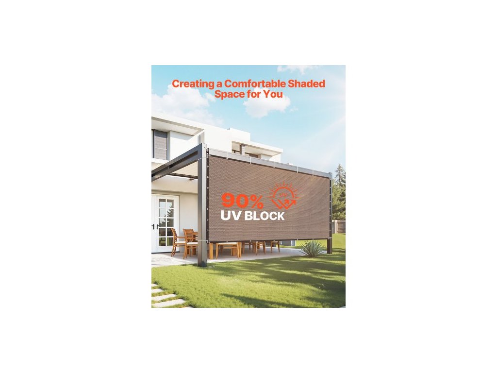 Sluneční clona 90% látka, stínicí kryt pergoly 8 x 12 stop s nerezovými oky, sluneční clona pro ochranu soukromí z materiálu HDPE 140 GSM, pro venkovní použití, terasu, zahradu a dvorek (hnědá)