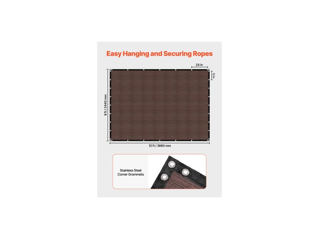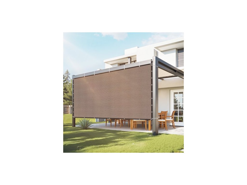 Sluneční clona 90% stínící látka, 8 x 12 stop (2,4 x 3,6 m) na pergolu s nerezovými očky, sluneční stříška, zástěna na ochranu soukromí z materiálu HDPE 140 g/m², pro venkovní použití, terasu, zahradu a dvorek (hnědá)Látka sluneční clony