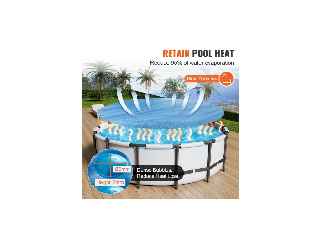 Solární kryt bazénu , kulatý solární kryt pro bazény o průměru Φ10 stop, solární kryt pro zapuštěné nadzemní bazény, solární kryty o tloušťce 15 mil, modrýSnižuje odpařování vody