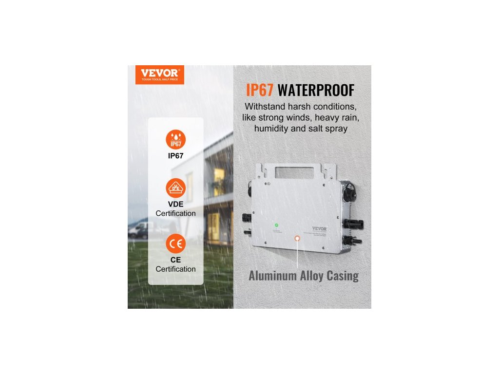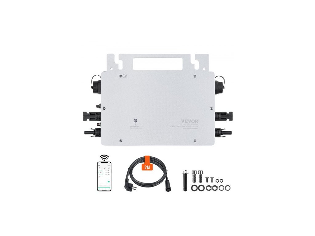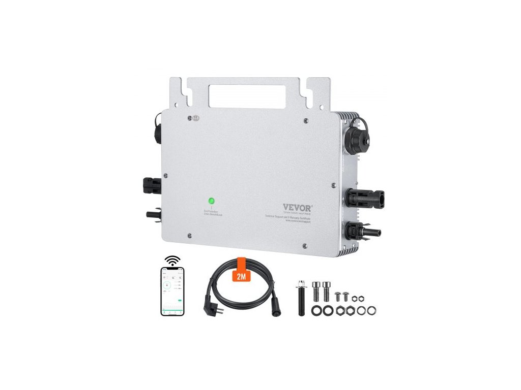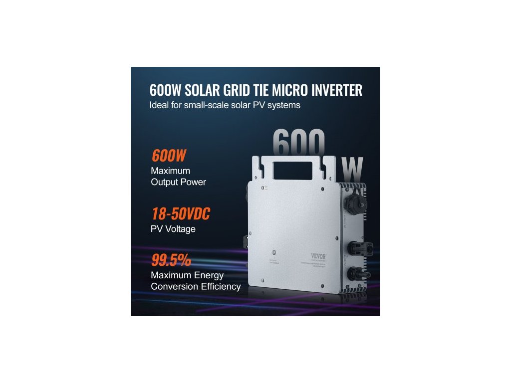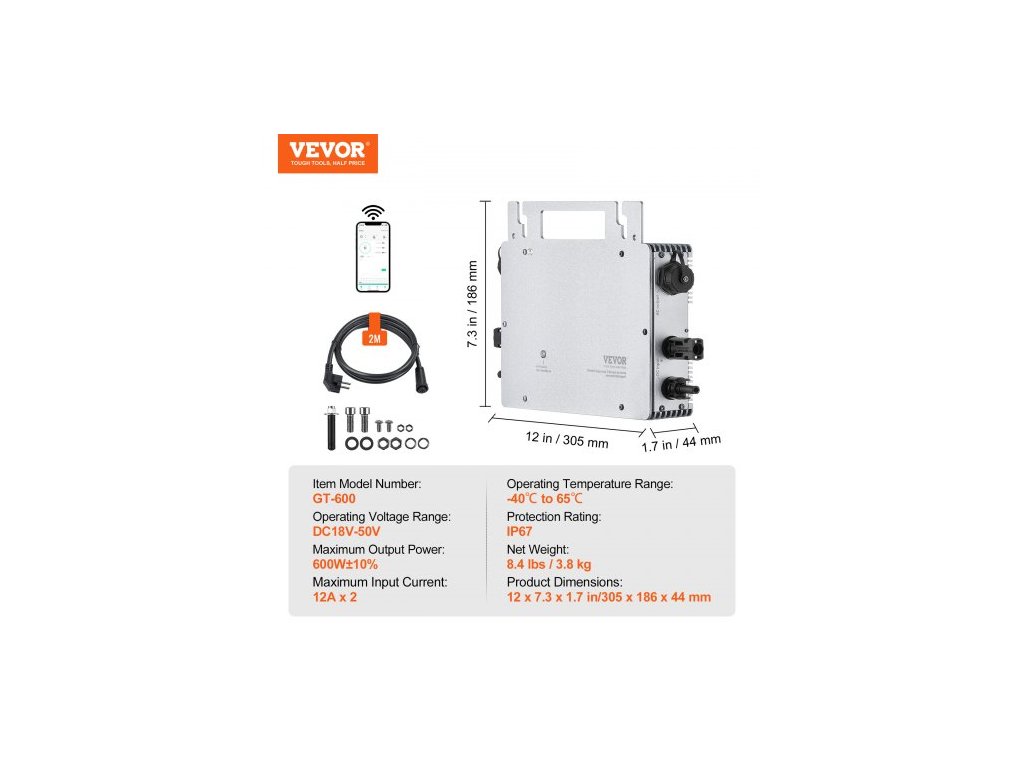 Solární mikro měnič Grid Tie, 600 W, Solární mikro měnič, Vodotěsný měnič z hliníkové slitiny s krytím IP67, Provozní napětí DC18-50 V s anténou APP Wifi, Napájecí kabel, pro solární panelyStabilní a spolehlivý zdroj napájení