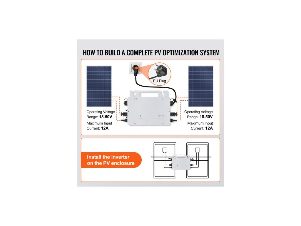 Solární mikro měnič pro síťové připojení, 600 W, solární mikro měnič, vodotěsný s hliníkovou slitinou s krytím IP67, solární měnič pro síťové připojení, provozní napětí DC18-50 V s aplikací, Wifi anténa, napájecí kabel, pro systémy solárních panelů
